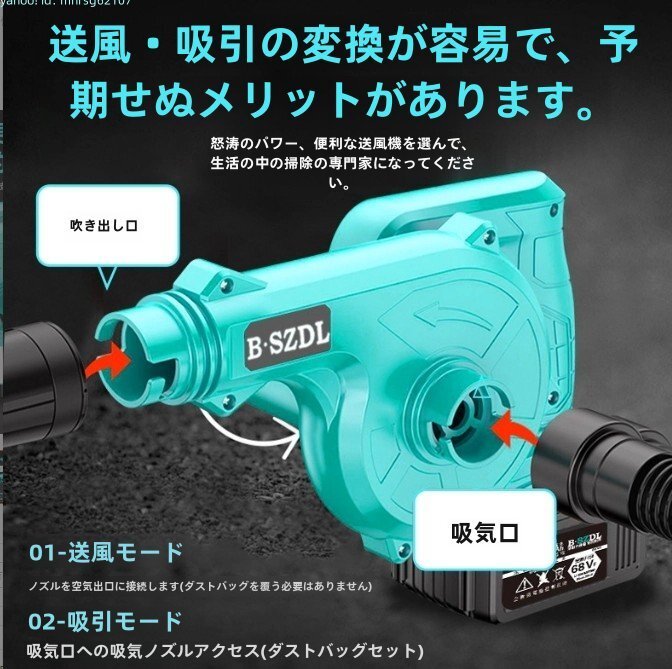 【1台2役&様々な場合に適用】吹き飛ばし・強力吸塵機能付きの1台2役のブロアー 充電式です。ニーズに応じ、ブレードを選択でき、様々な用途に対応できます。ケースのほこり、落葉掃除、庭の掃除、車の掃除、工業掃除、家庭の掃除、BBQの火起こし、コンピュータなどいろんな分野に大活躍!