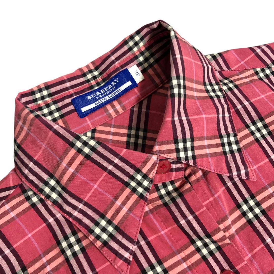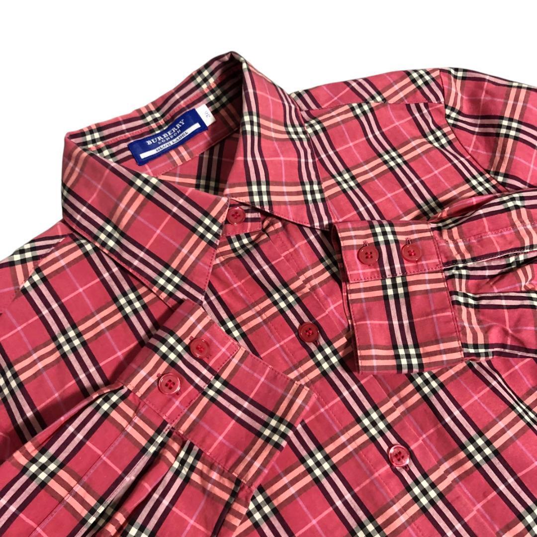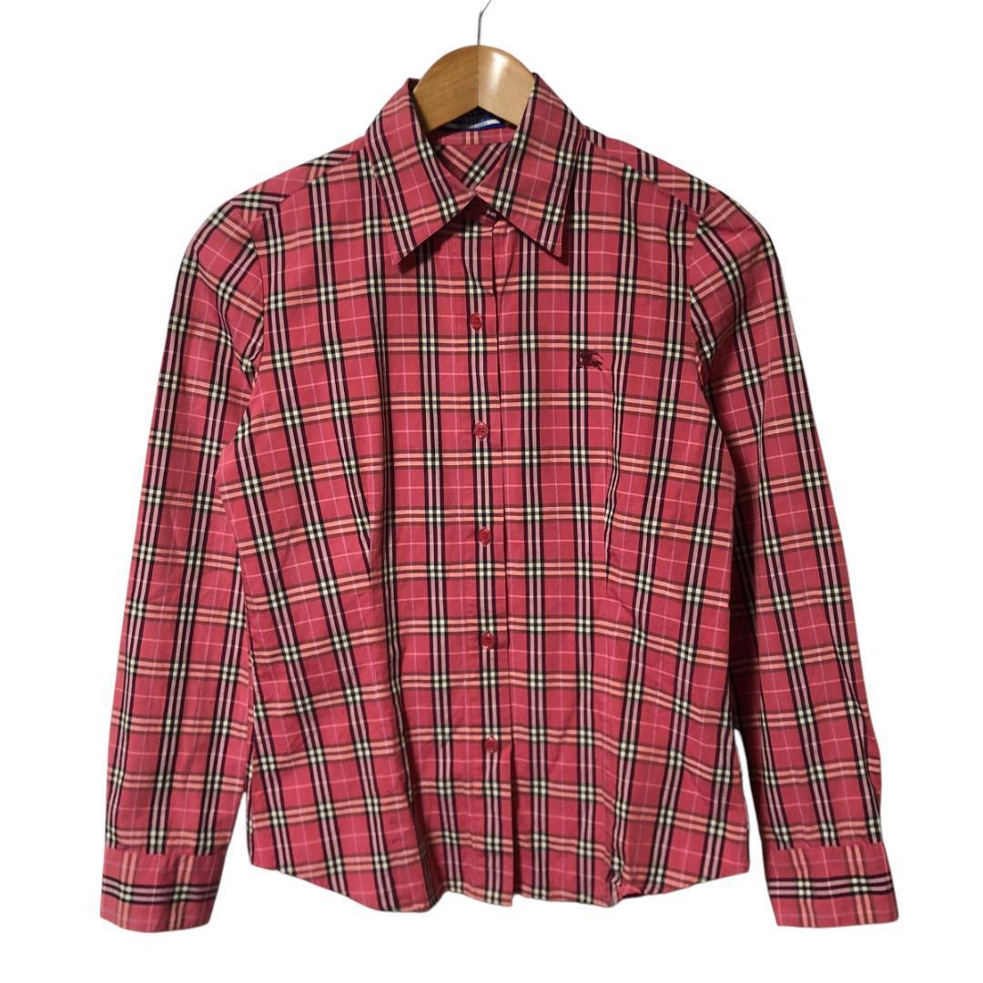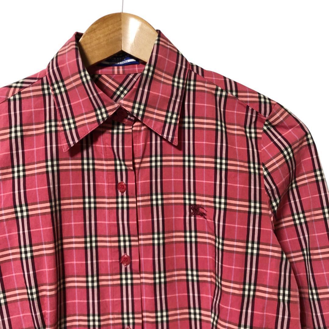 BURBERRY BLUE LABEL バーバリーブルーレーベル チェック シャツ ブラウス 長袖 ホース刺繍 38 ピンク ノバチェック レディース M4