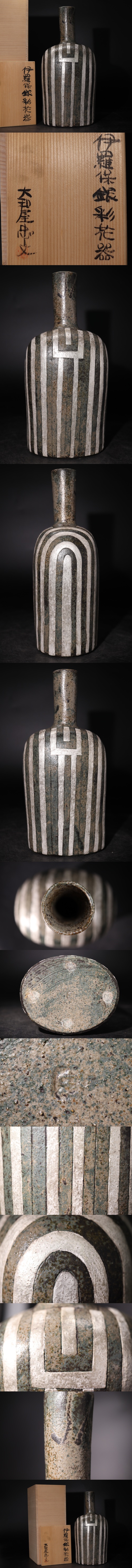 | 大和屋忠文 造 「 伊羅保 銀彩 花器 」 共箱付 / 花器 花瓶 壺 煎茶飾 .G2588 |