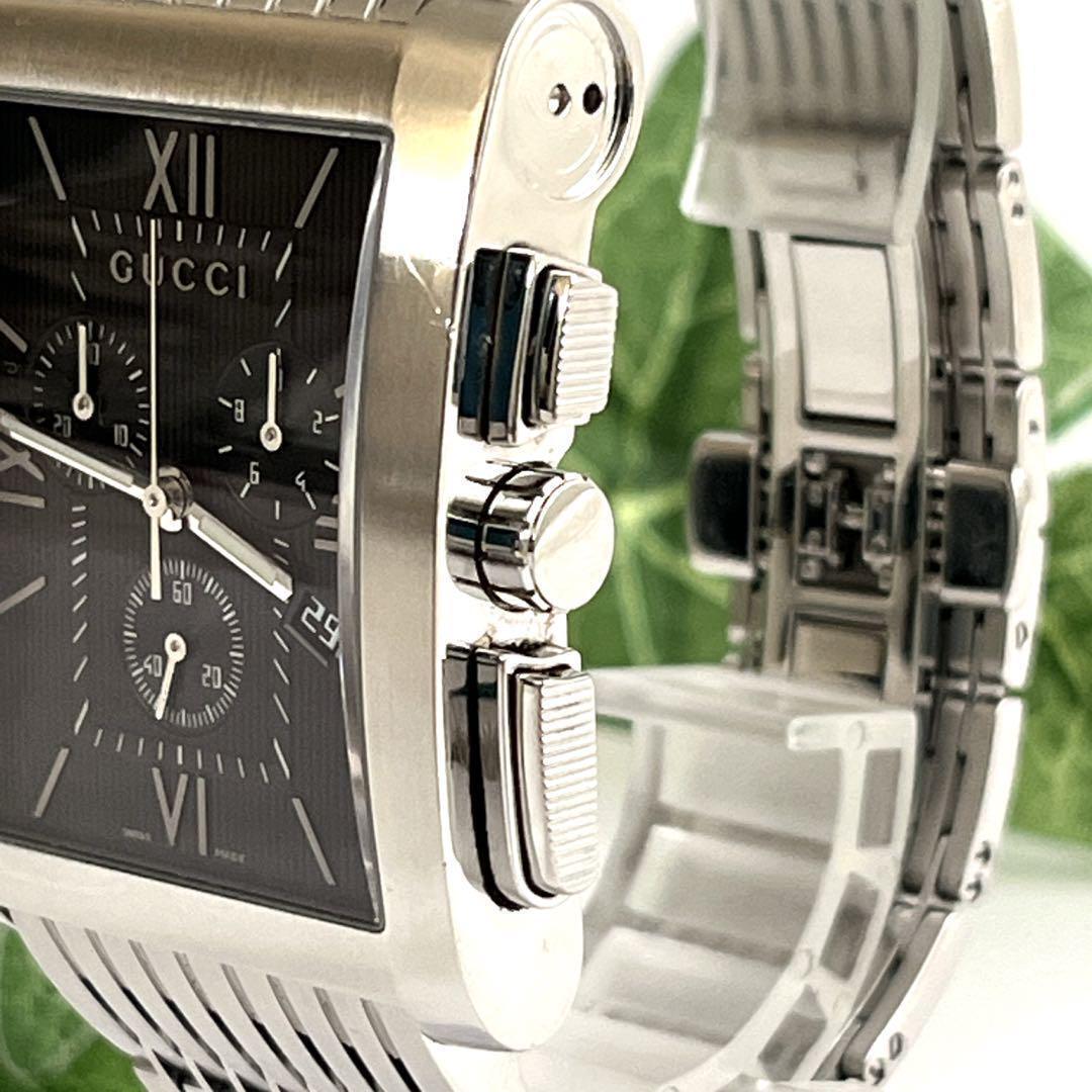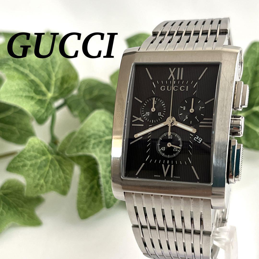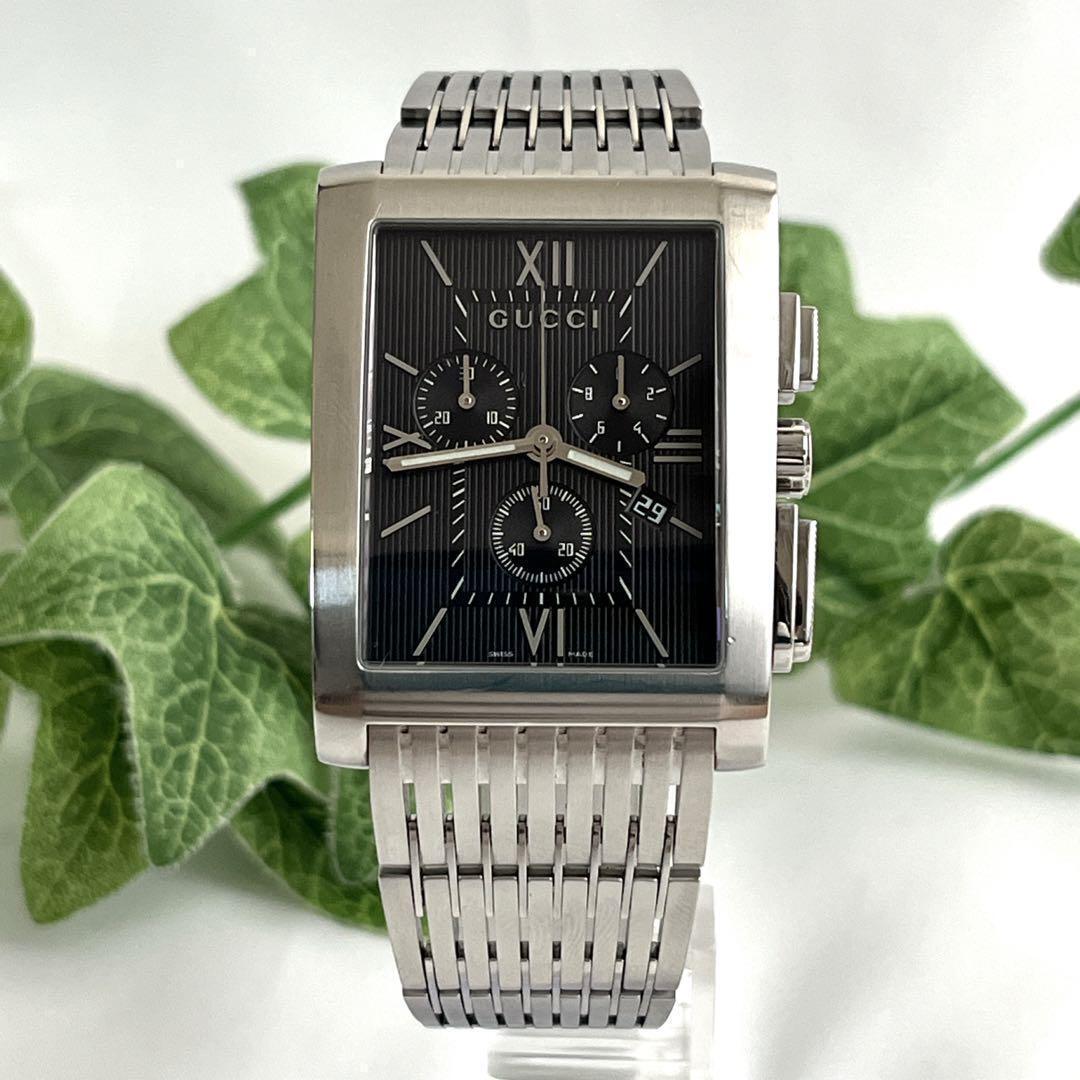 腕時計 Gメトロ クロノグラフ デイト シルバー メンズ 黒文字盤 ブラック文字盤 ロゴ クォーツ MADE IN SWISS chrono ステンレススチール