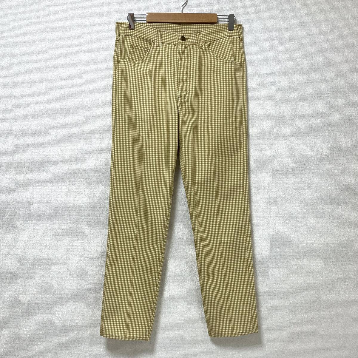 60s 70s Leens Lee PREST USA製 ギンガムチェック テーパード スリム スラックス イエロー系
