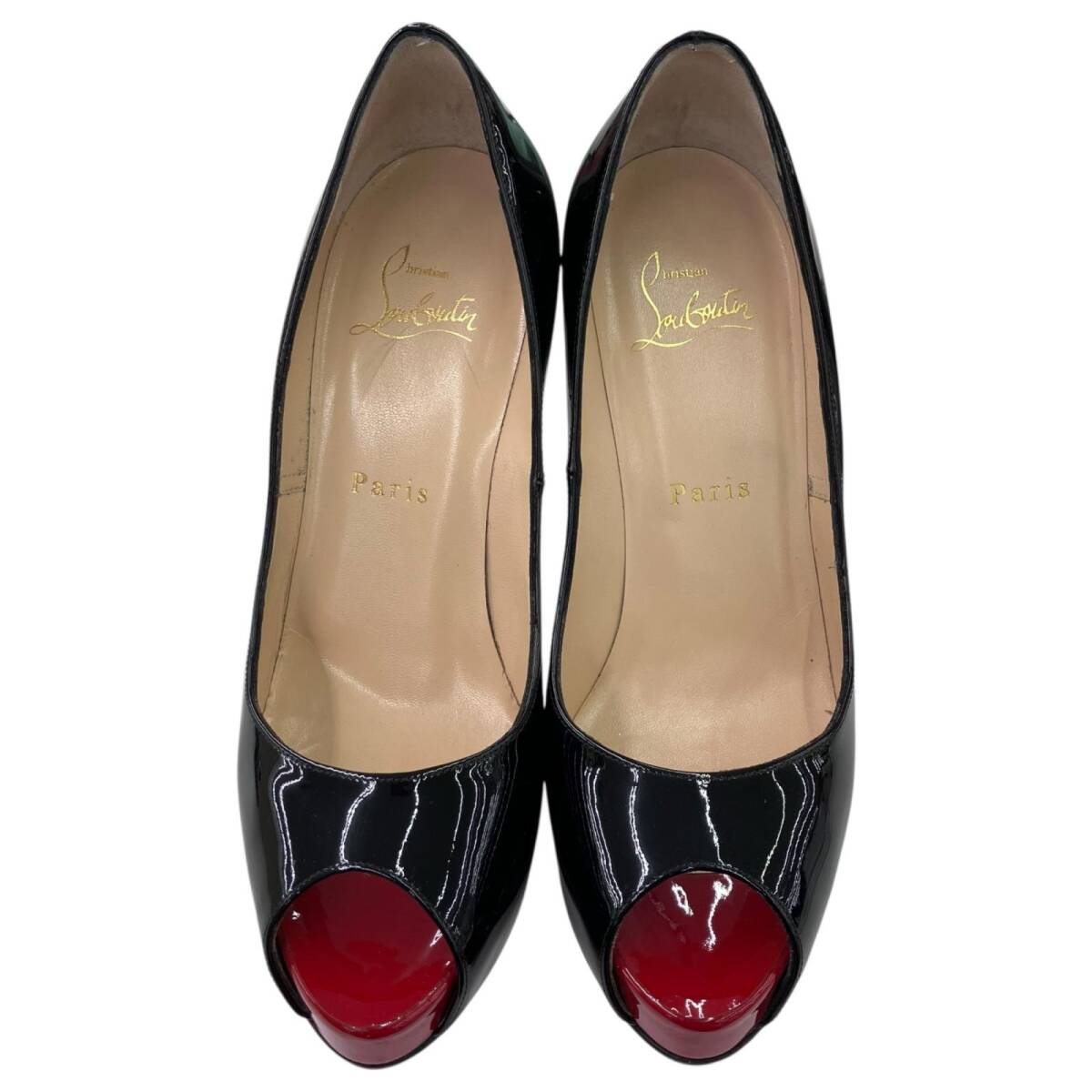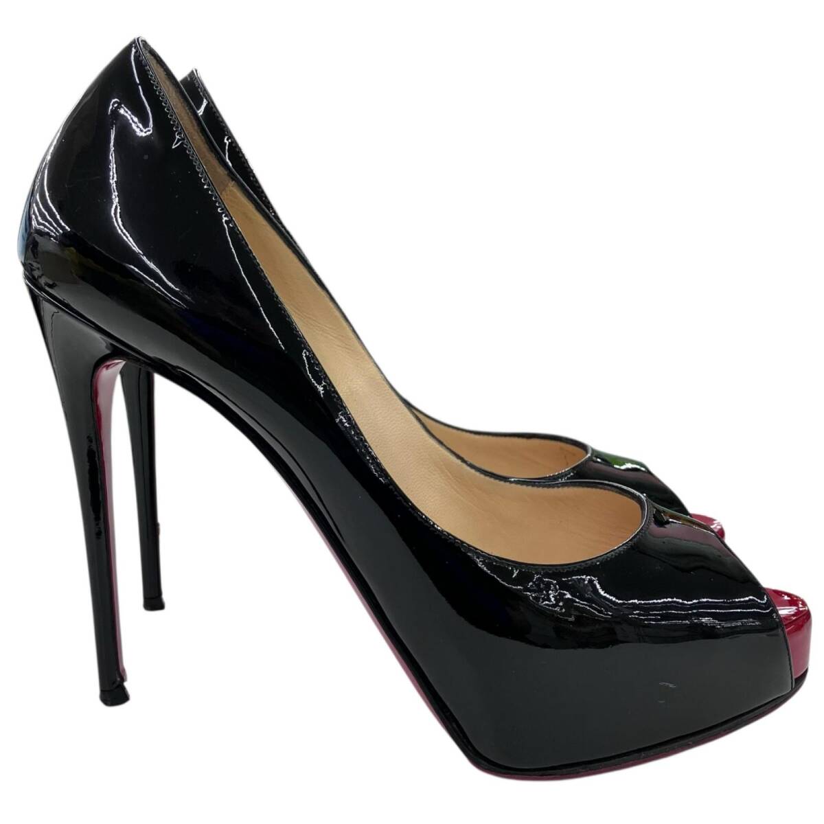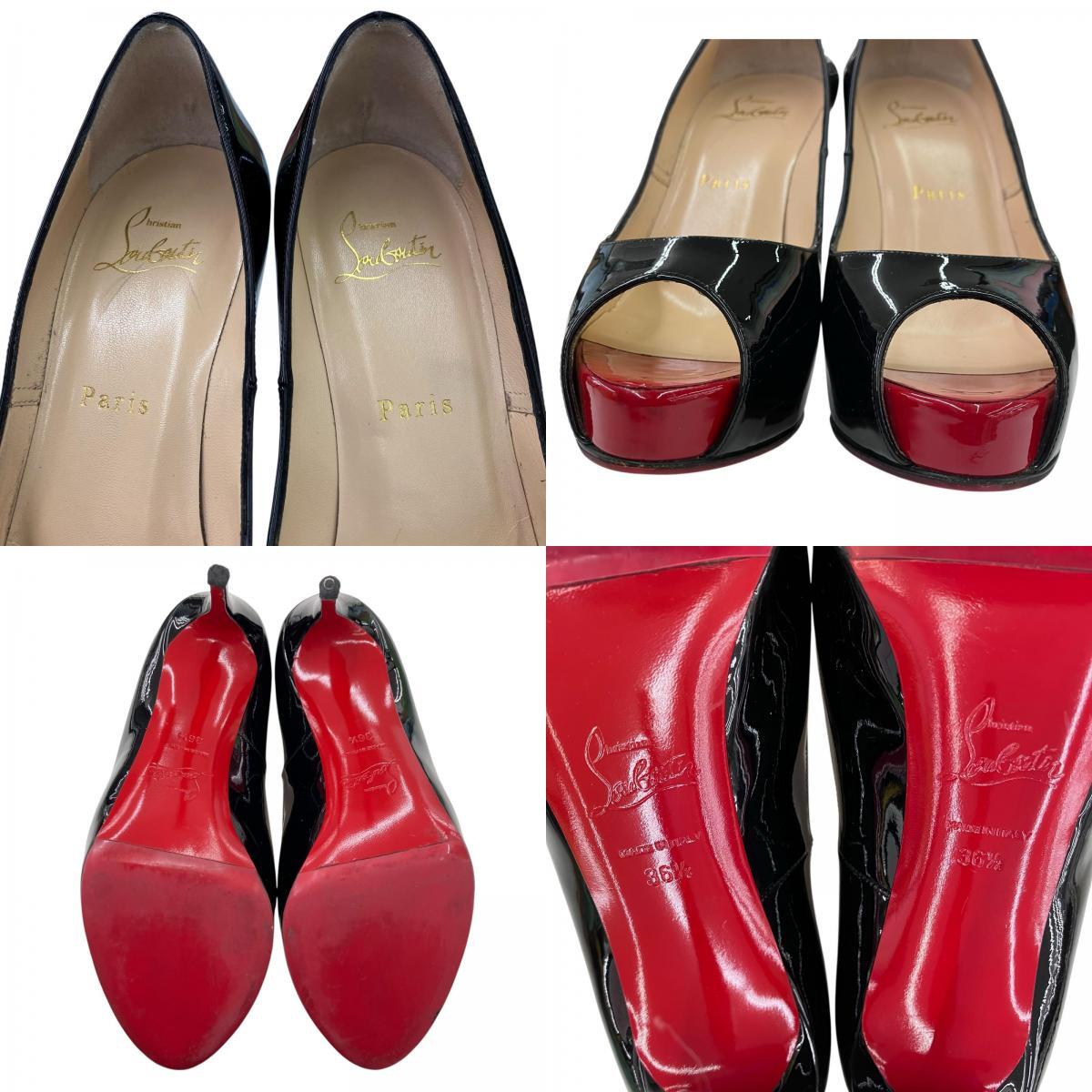 186005 Christian Louboutin クリスチャンルブタン Chiristian Louboutin オープントゥサンダル ブラック エナメル/ゴム レディース