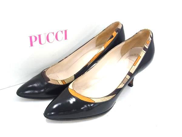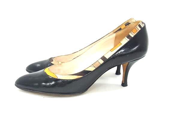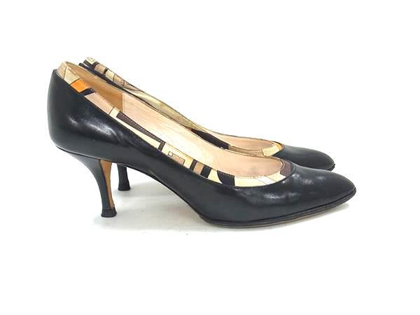 EMILIO PUCCI エミリオプッチ レザー×サテン ヒール パンプス 表記サイズ 36 1/2 (約22.5cm) 靴 シューズ ブラック系 DJ6199