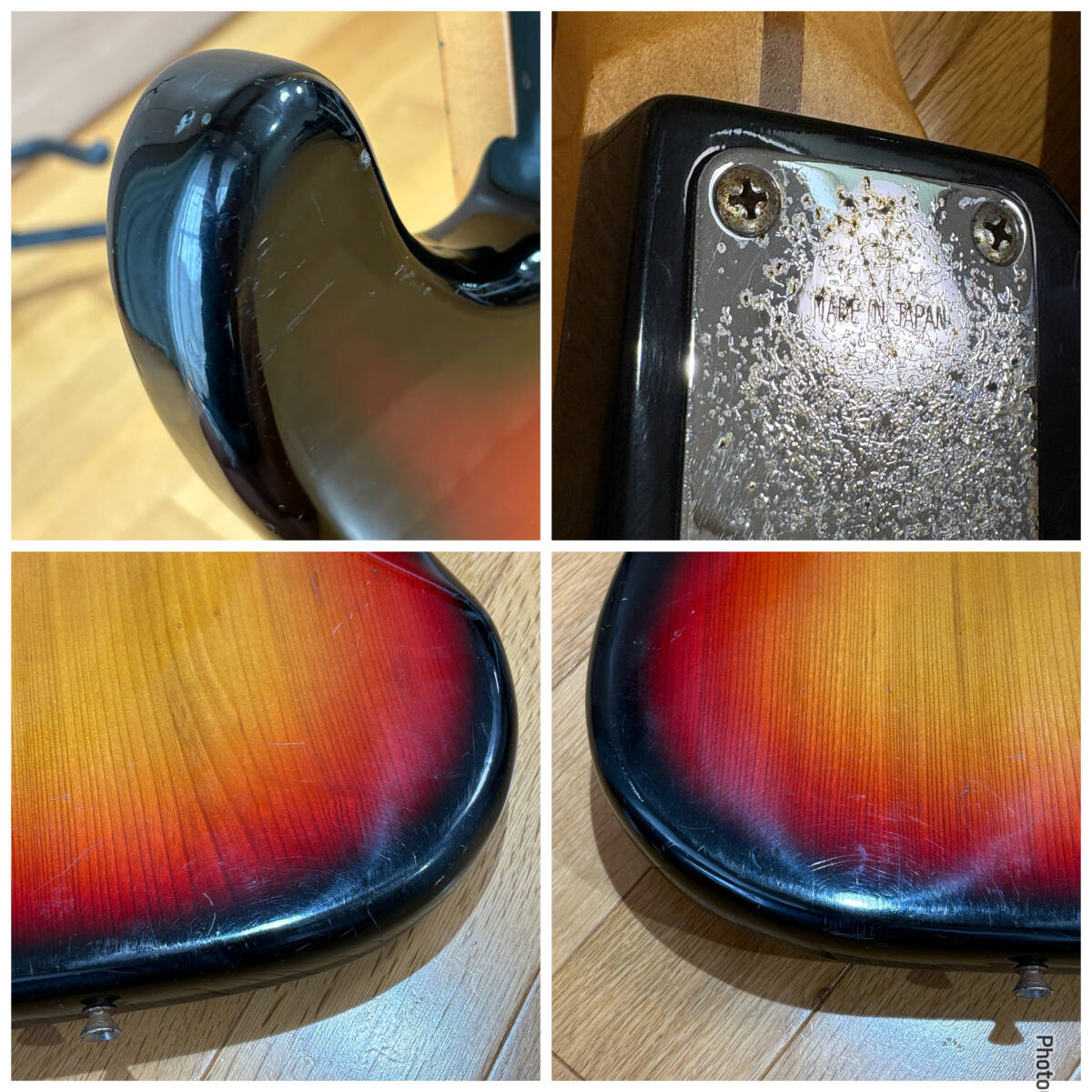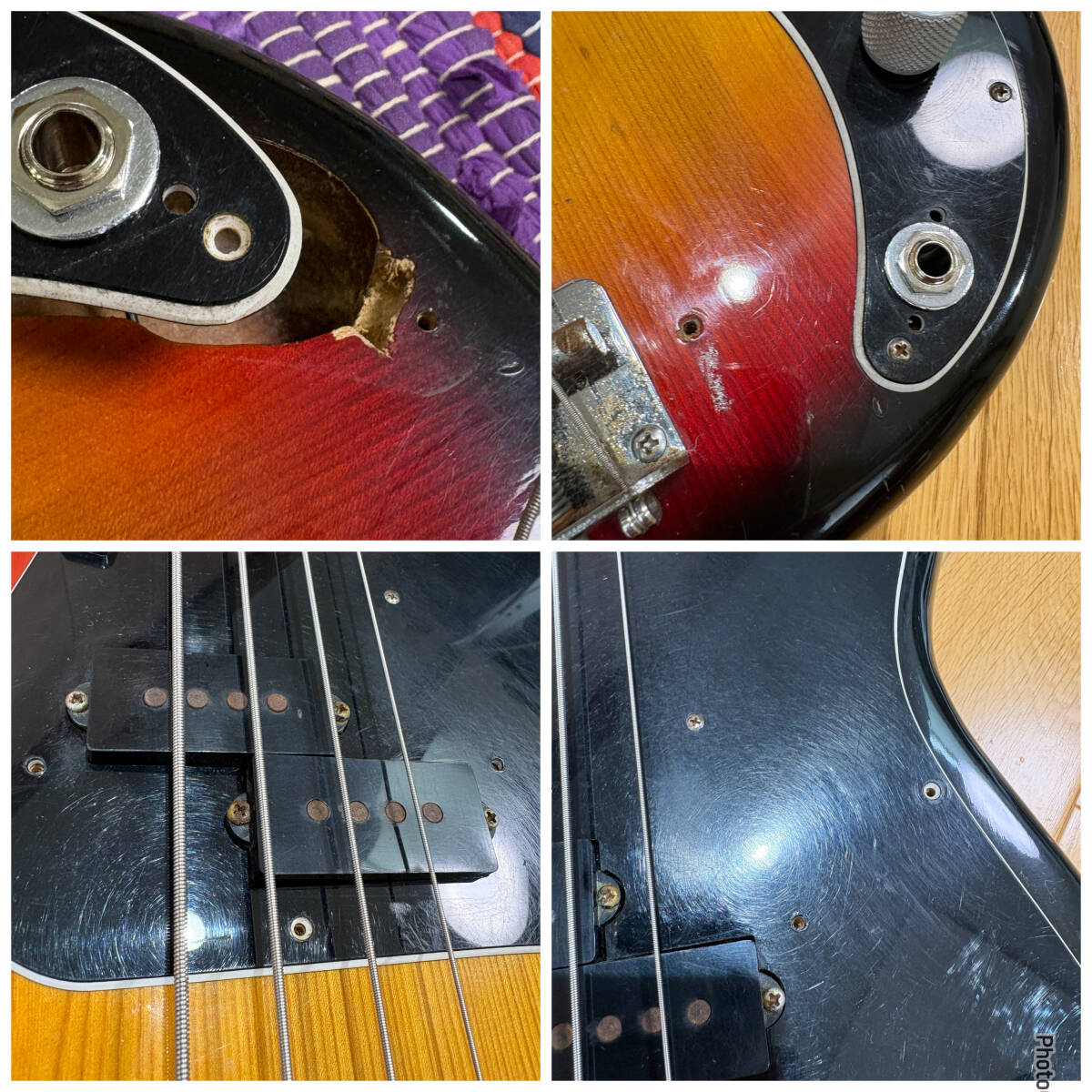 前のジャックの穴が残っていますおりコネクタ取り付けた名残で木部が削られています(ピックガードで隠れます)。
