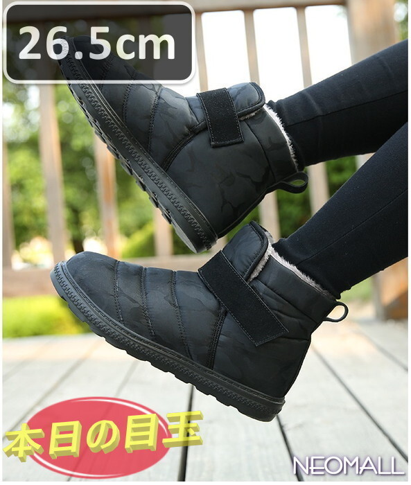 ユニセックス スノーシューズ 【870】 26.5cm 迷彩ブラック ムートンブーツ スニーカー ウィンターブーツ 裏起毛 防水 防寒 防滑 冬用靴