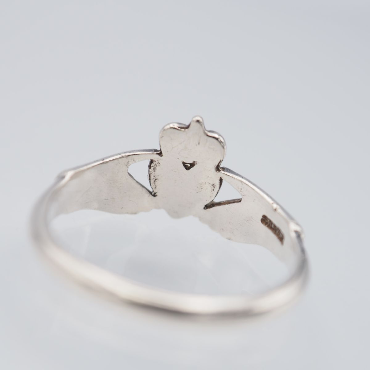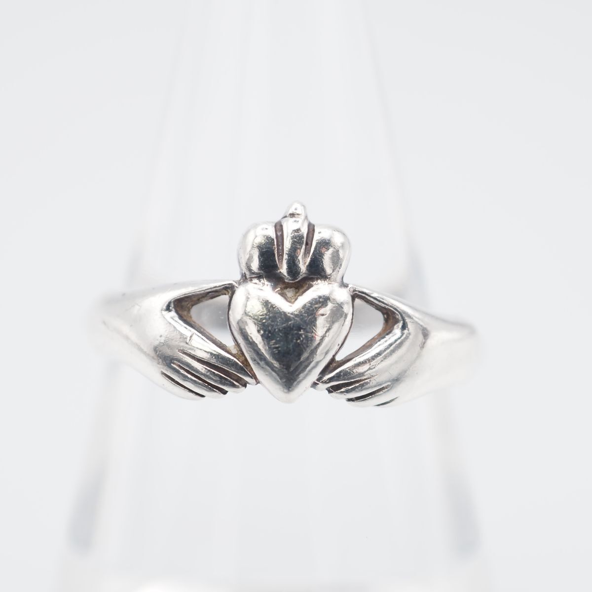 C725 ヴィンテージ SILVER刻印 リング ハート ハンド デザイン シルバー 指輪 14号