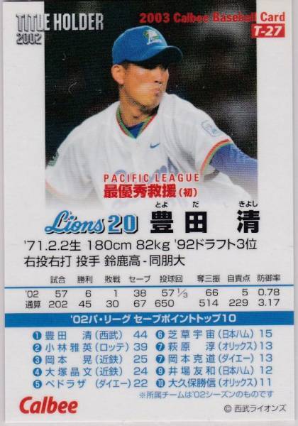 ●2003カルビー 【豊田 清】 タイトルホルダー 通常版:西武 R2