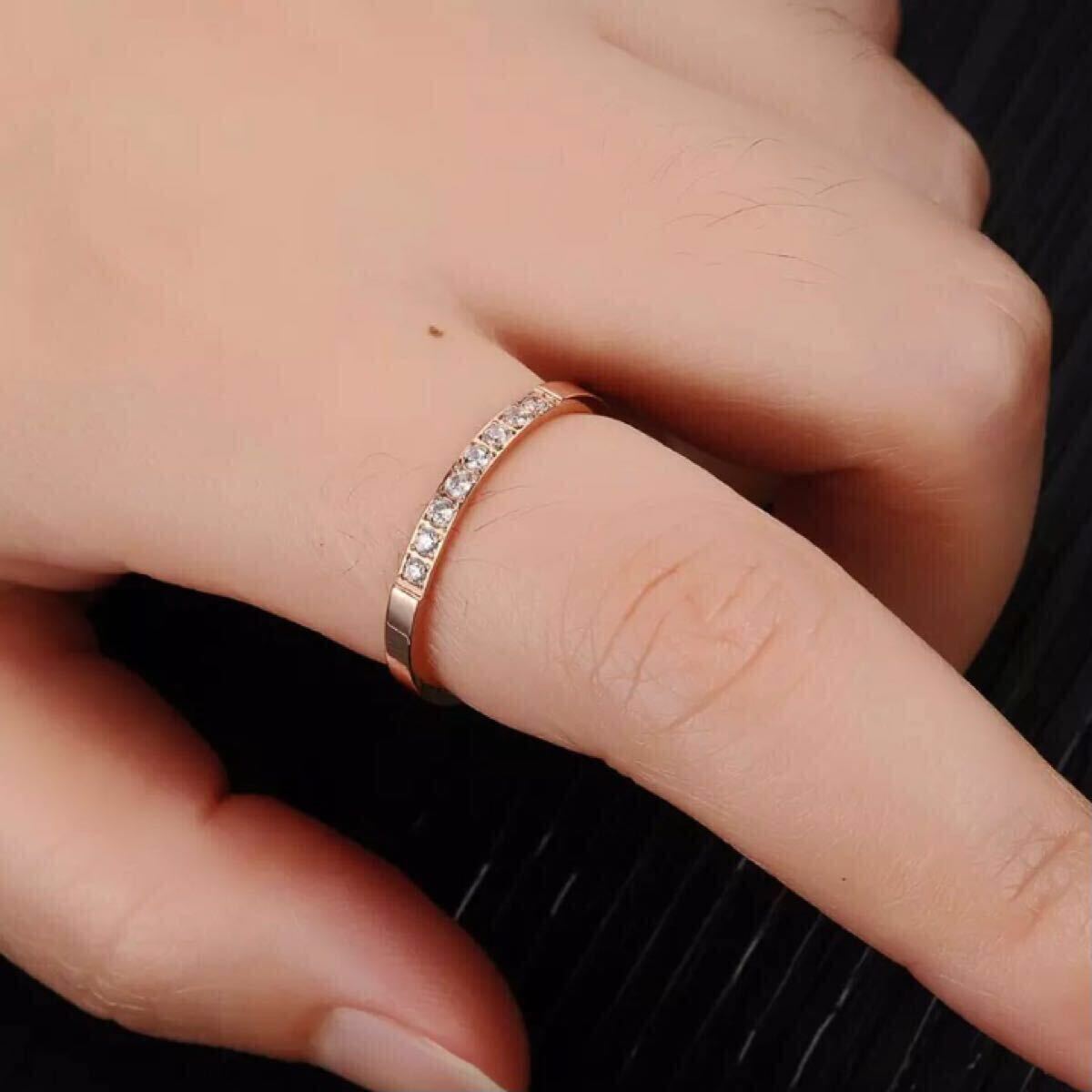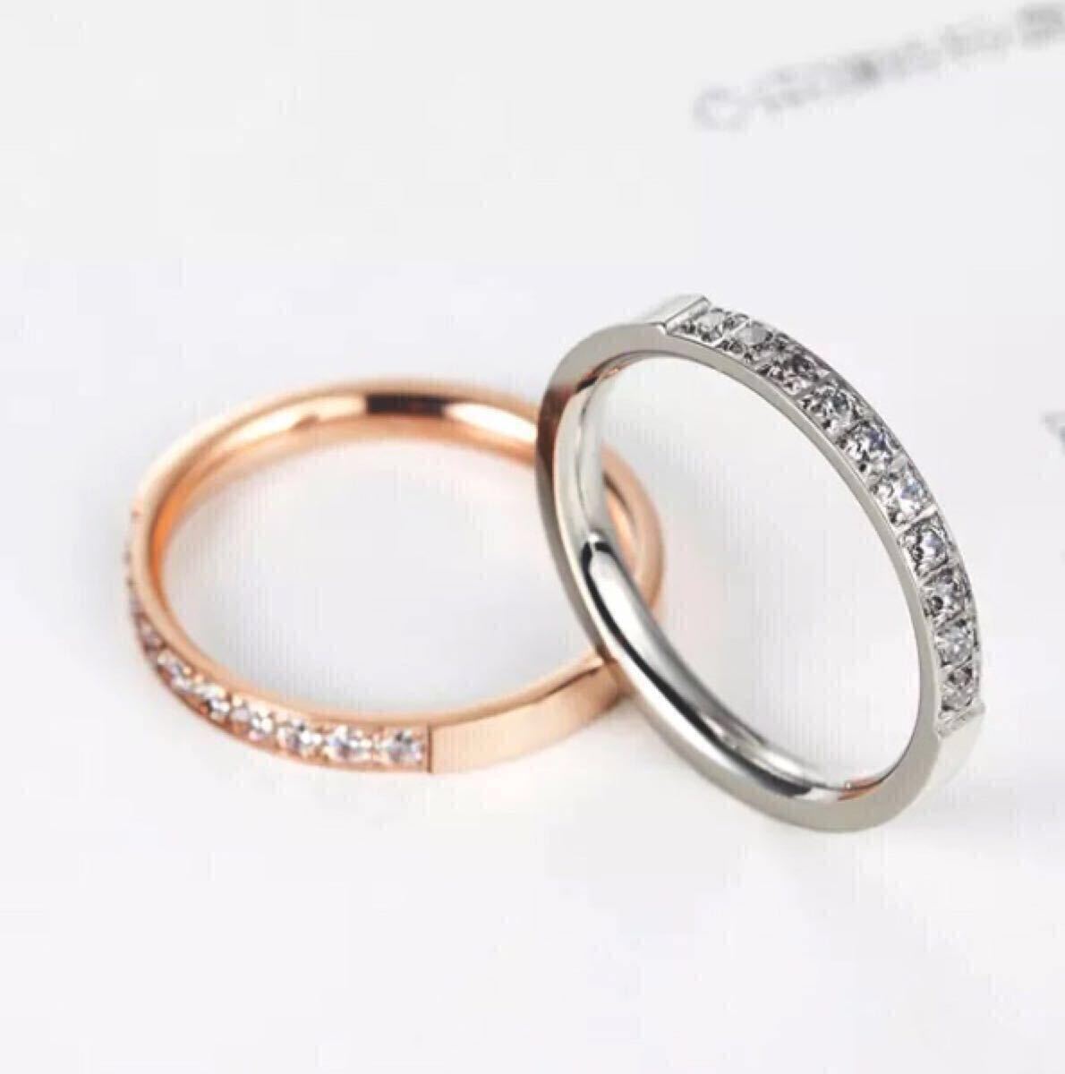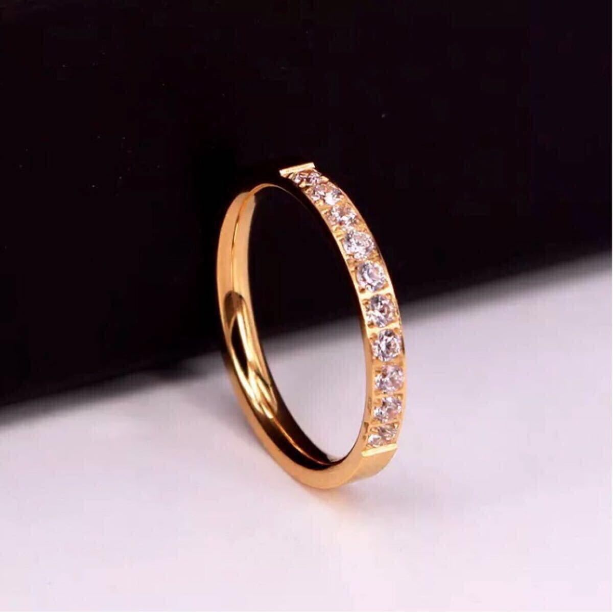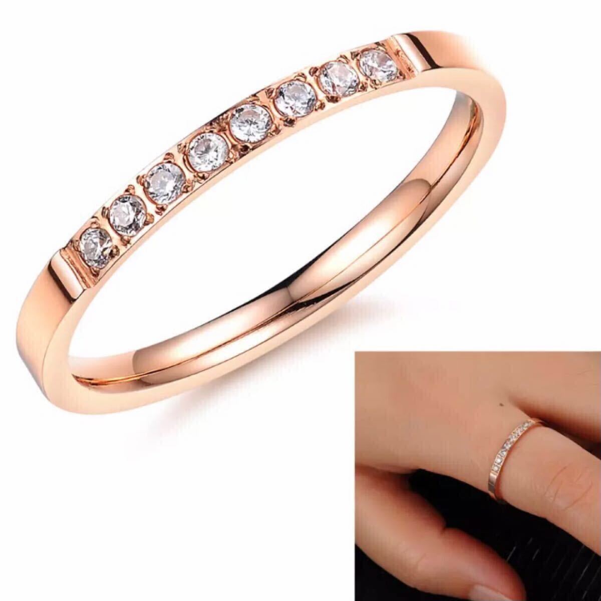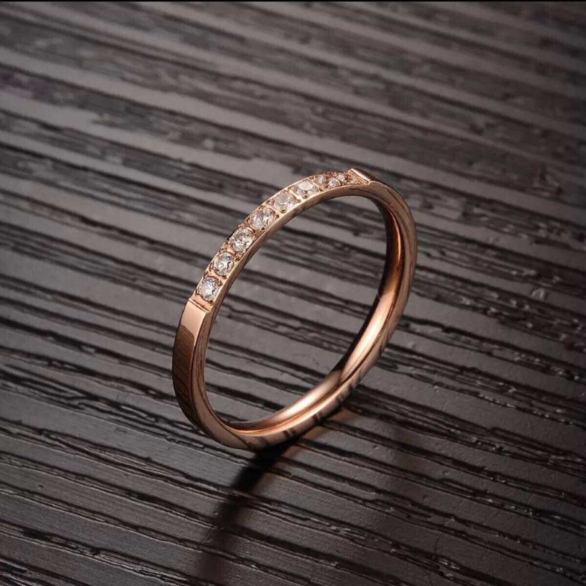 お肌に優しいチタンにピンクゴールドを施し、華やかに輝くAAACZダイアモンドをあしらったオシャレなリングです。シンプルなデザインで、どんなファッションにも合わせやすいお品です。