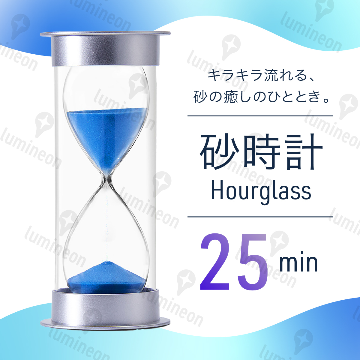 砂時計 25分 ブルー シルバー アクリル ガラス インテリア おしゃれ 置物 高級 長時間 子供 ギフト サンド タイマー プレゼント g065e
