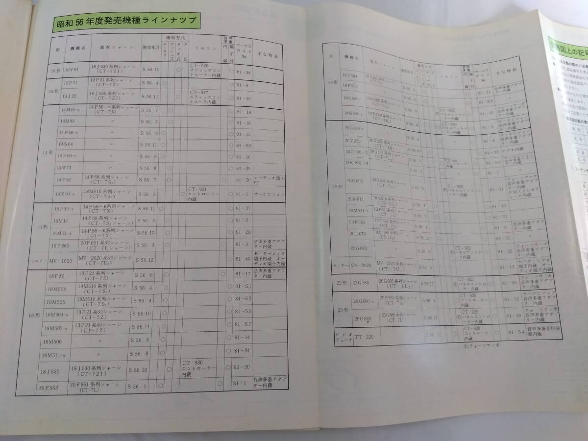 昭和56年に発売された東芝製テレビ機種の回路図が多数収録されており、