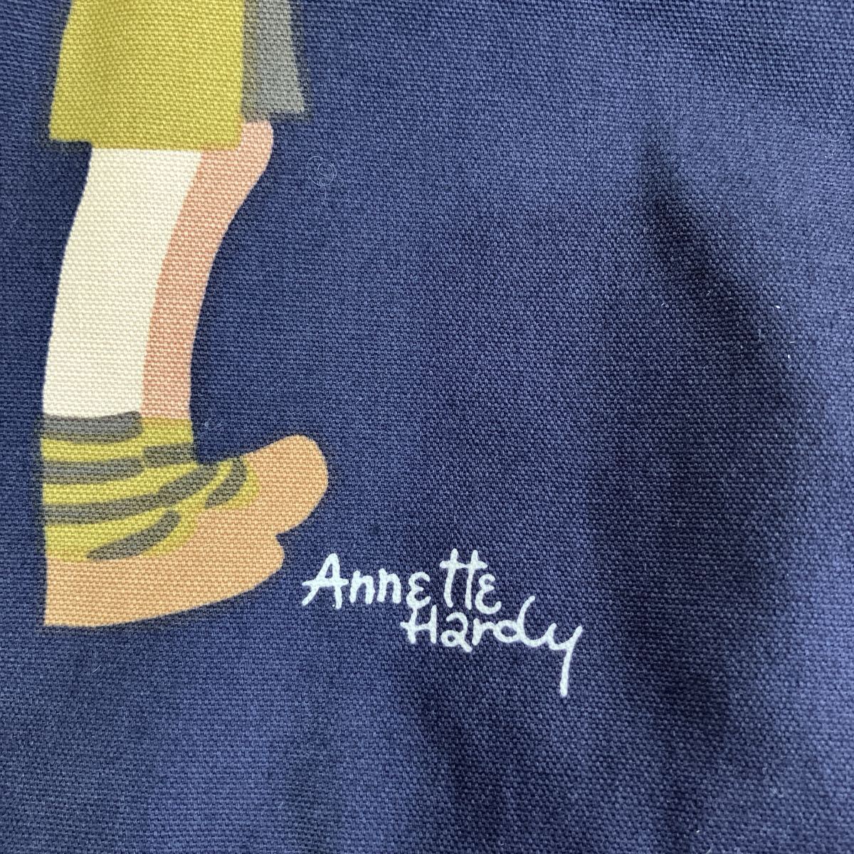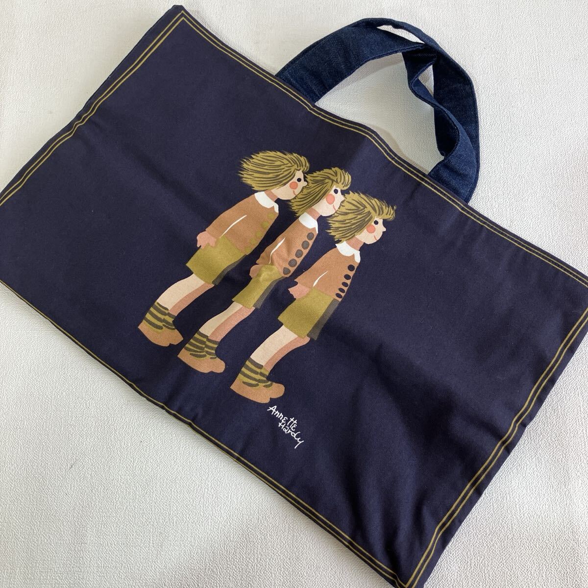 ☆【未使用品】希少!Annette Hardyの絵 ハンドメイド レッスンバッグ 「3人の女の子」紺色 サブバッグ 手提げかばん フランス童画家