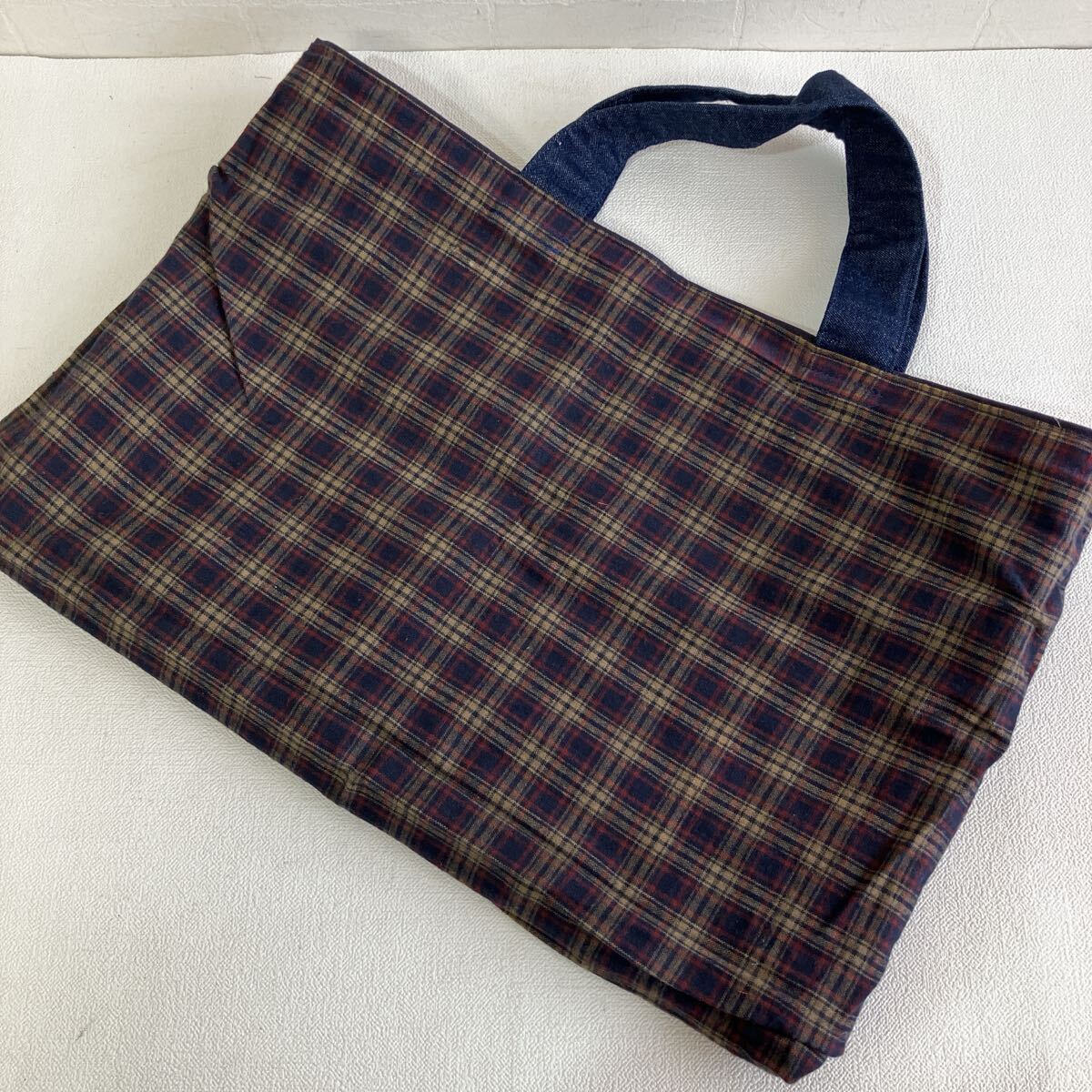 裏面と持ち手はデニムを使い、裏地にはしっかりとしたチェック柄の