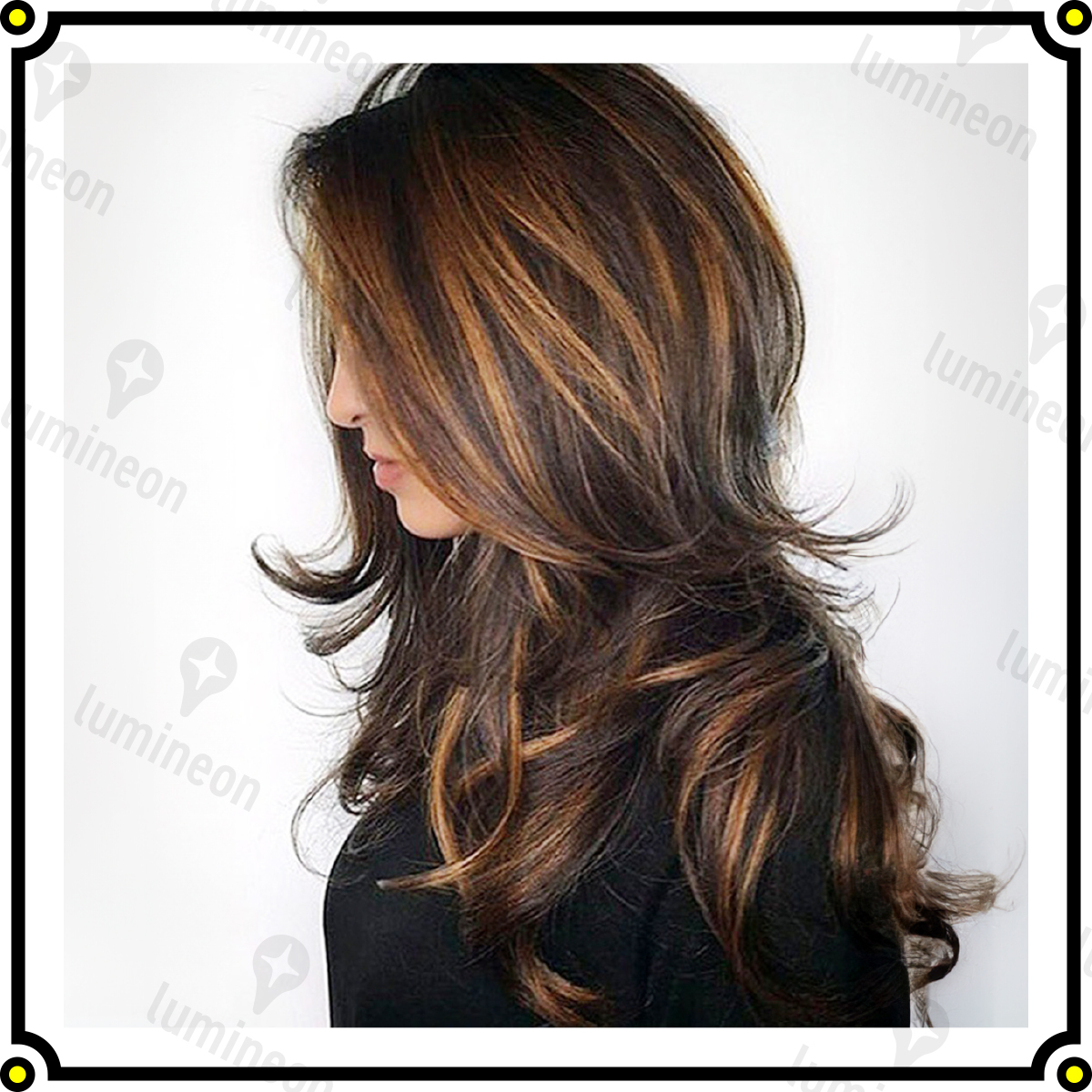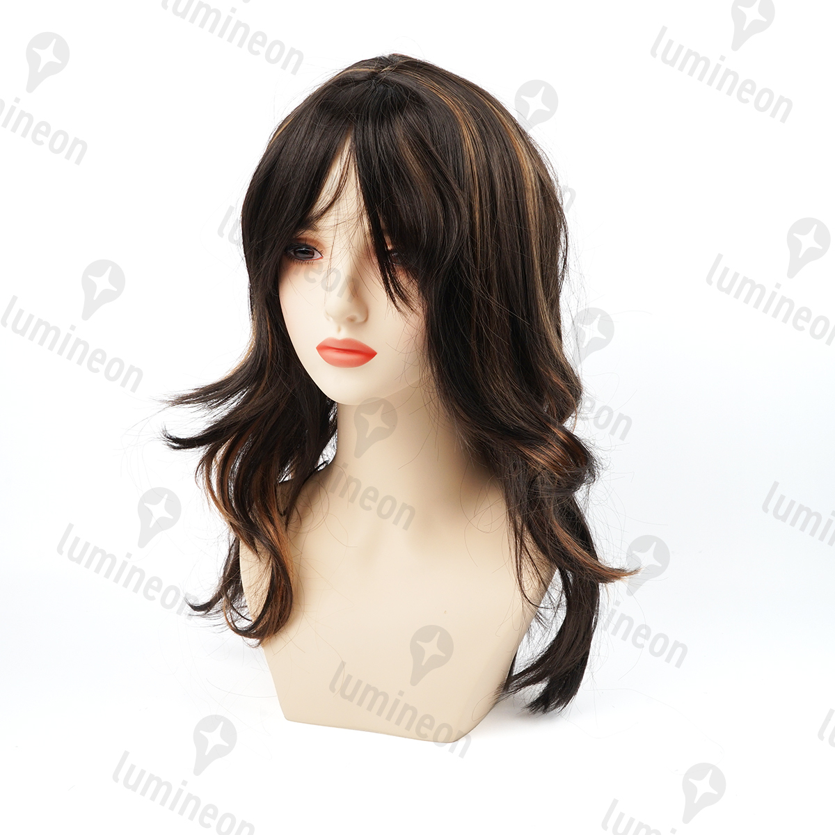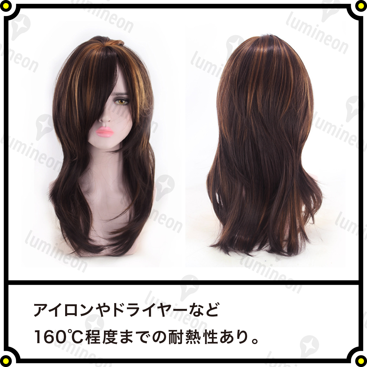 ウィッグ フル ロング カール カーリー レイヤー入り メッシュ インナーカラー ハイライト ブラウン 女性用 レディース 自然 安い g203 3