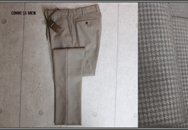 新品 コムサメン 春夏 シャドー 千鳥 ストレッチ スラックス M/グレージュ/定価2.5万円/COMME CA MEN