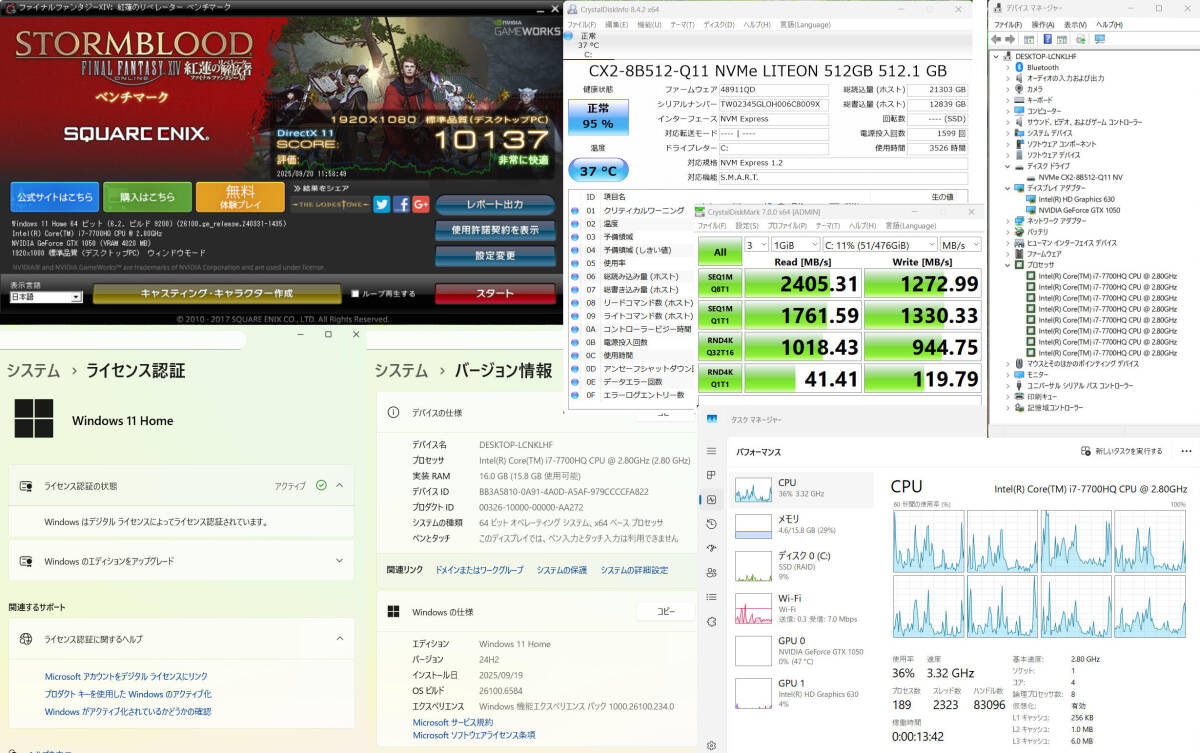 上記OSをクリアインストール後、WindowsUpdateで適用可能なパッチは適用済で、デバイスマネージャ上で、不明なデバイスもない状態になっています。