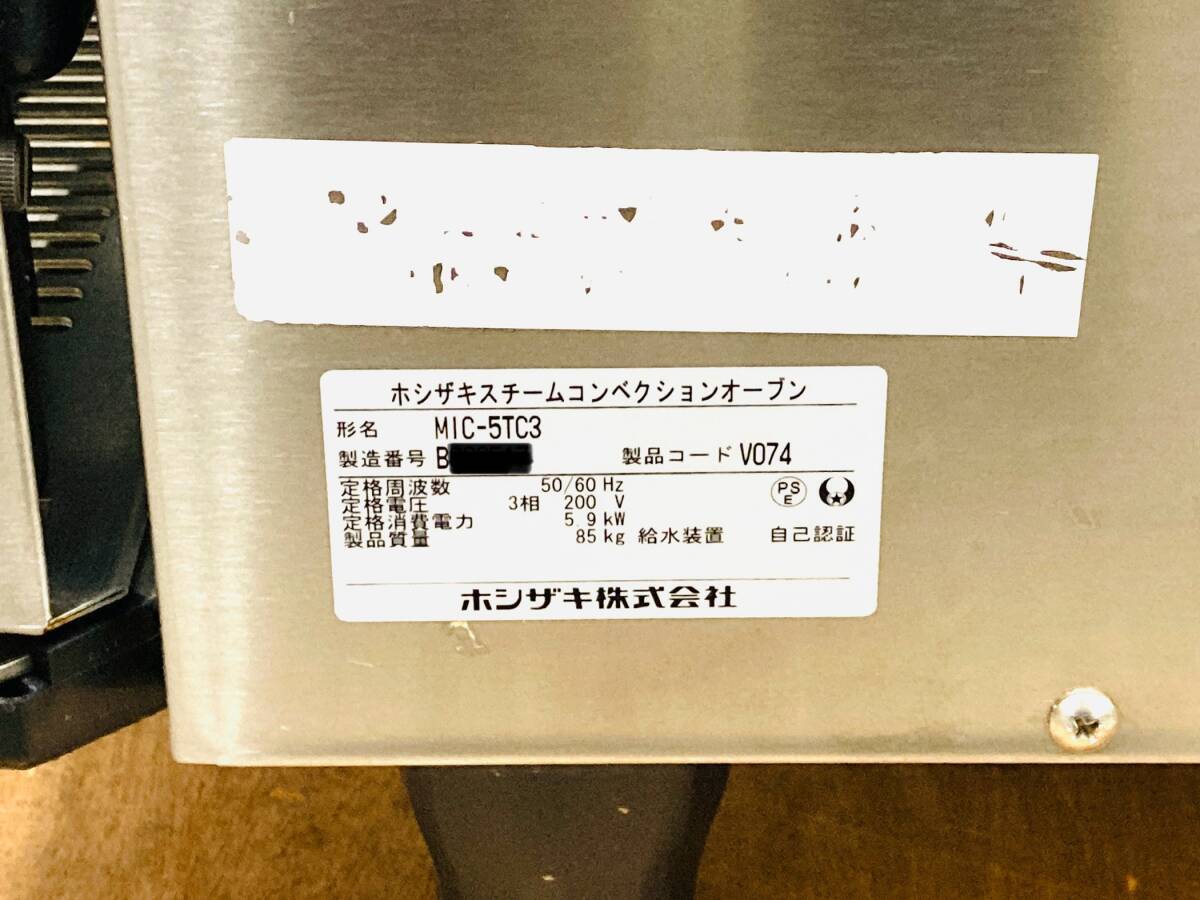HOSHIZAKI ホシザキ スチームコンベクションオーブン MIC-5TC3