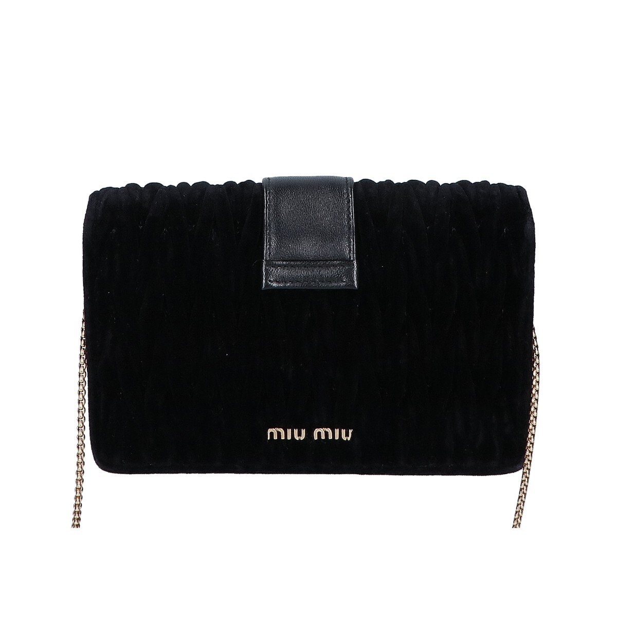 MIUMIU ミュウミュウ 5BH095 ベロアマテラッセ ビジューフラップ 2WAY クラッチバッグ チェーン ショルダーバッグ ブラック レディース