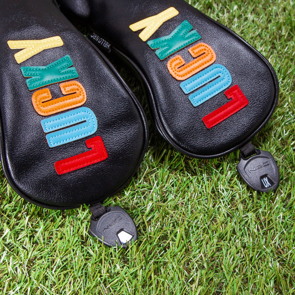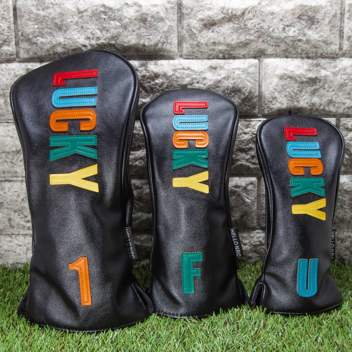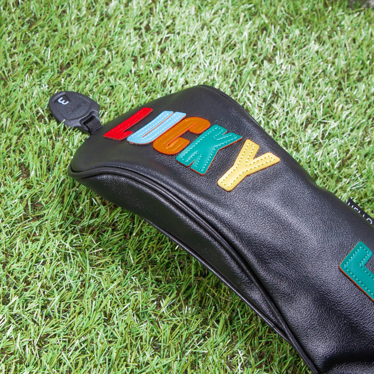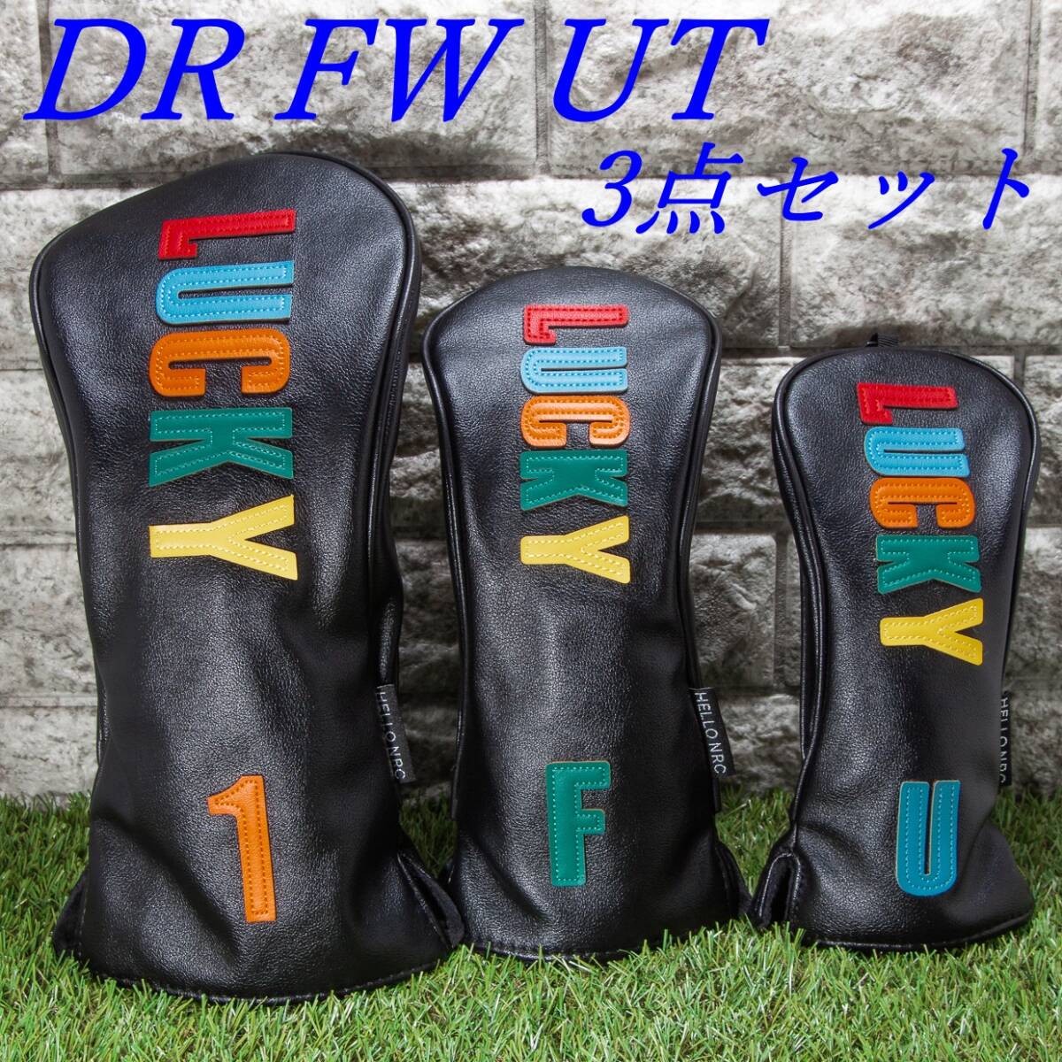 ゴルフクラブカバー LUCKY(黒) ヘッドカバー ドライバー・フェアウェイウッド・ユーティリティ用 3点セット 新品 未使用品