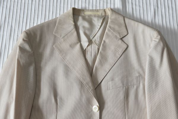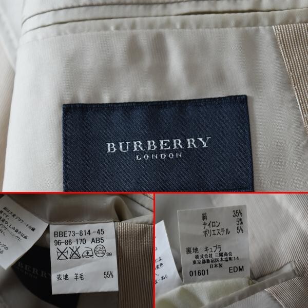 ★バーバリーロンドン★贅沢を極めた羊毛シルク絹の高級生地★気品が漂うベージュ色 快適に着用できるお洒落なジャケットAB5/M春夏~通期