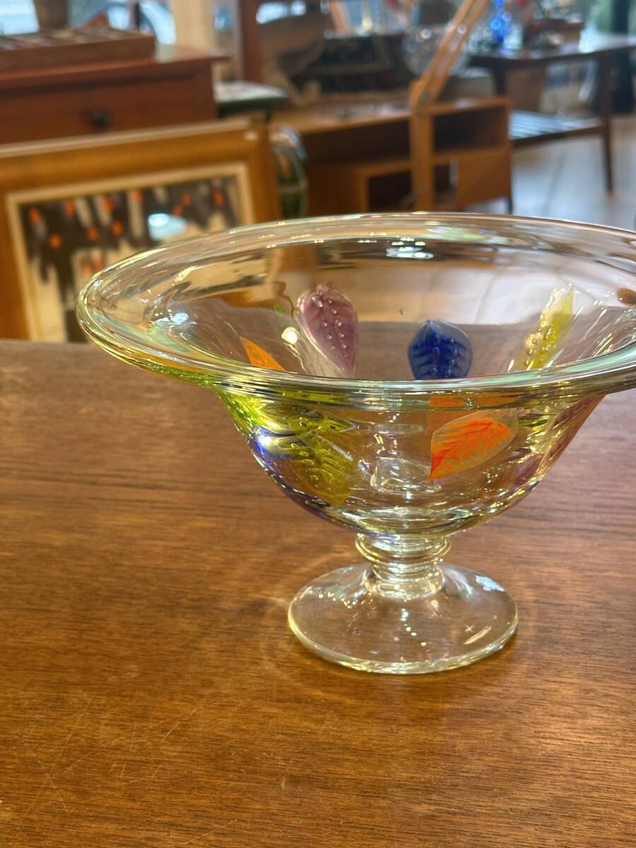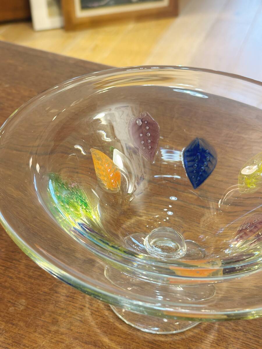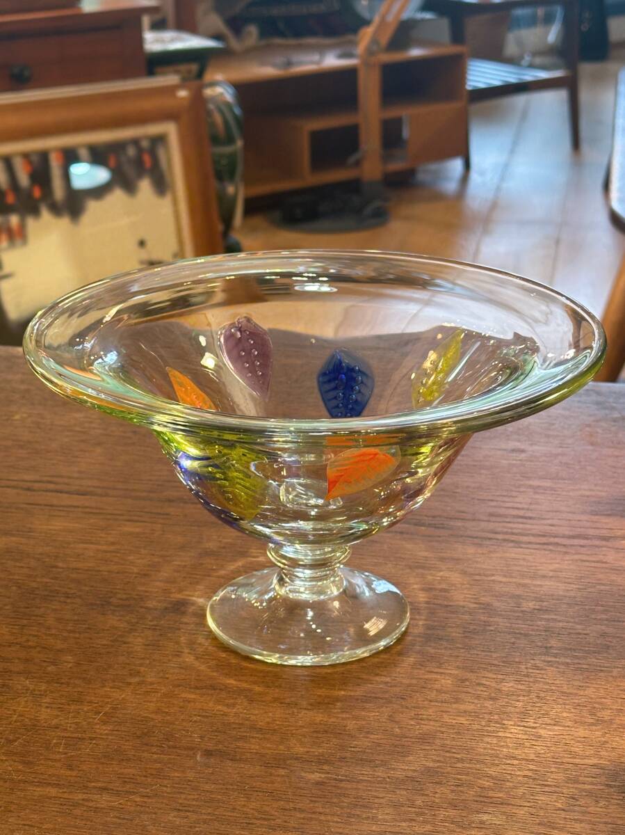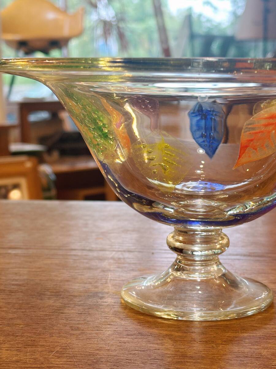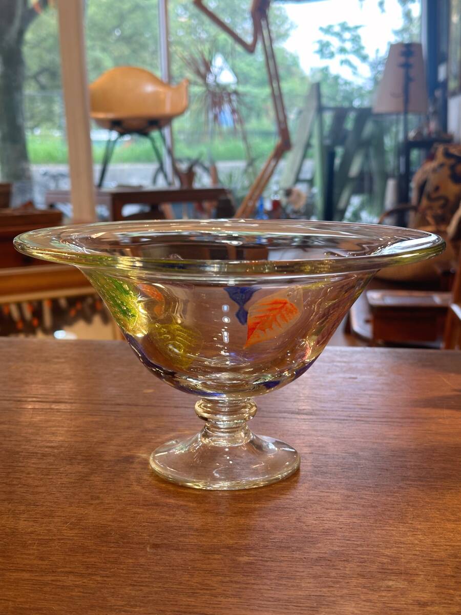 ◆希少◆DANSK 1990s ガラス コンポート 北欧 ビンテージ 食器 デザート フルーツ パーティー皿 レア アートグラス 吹きガラス 昭和