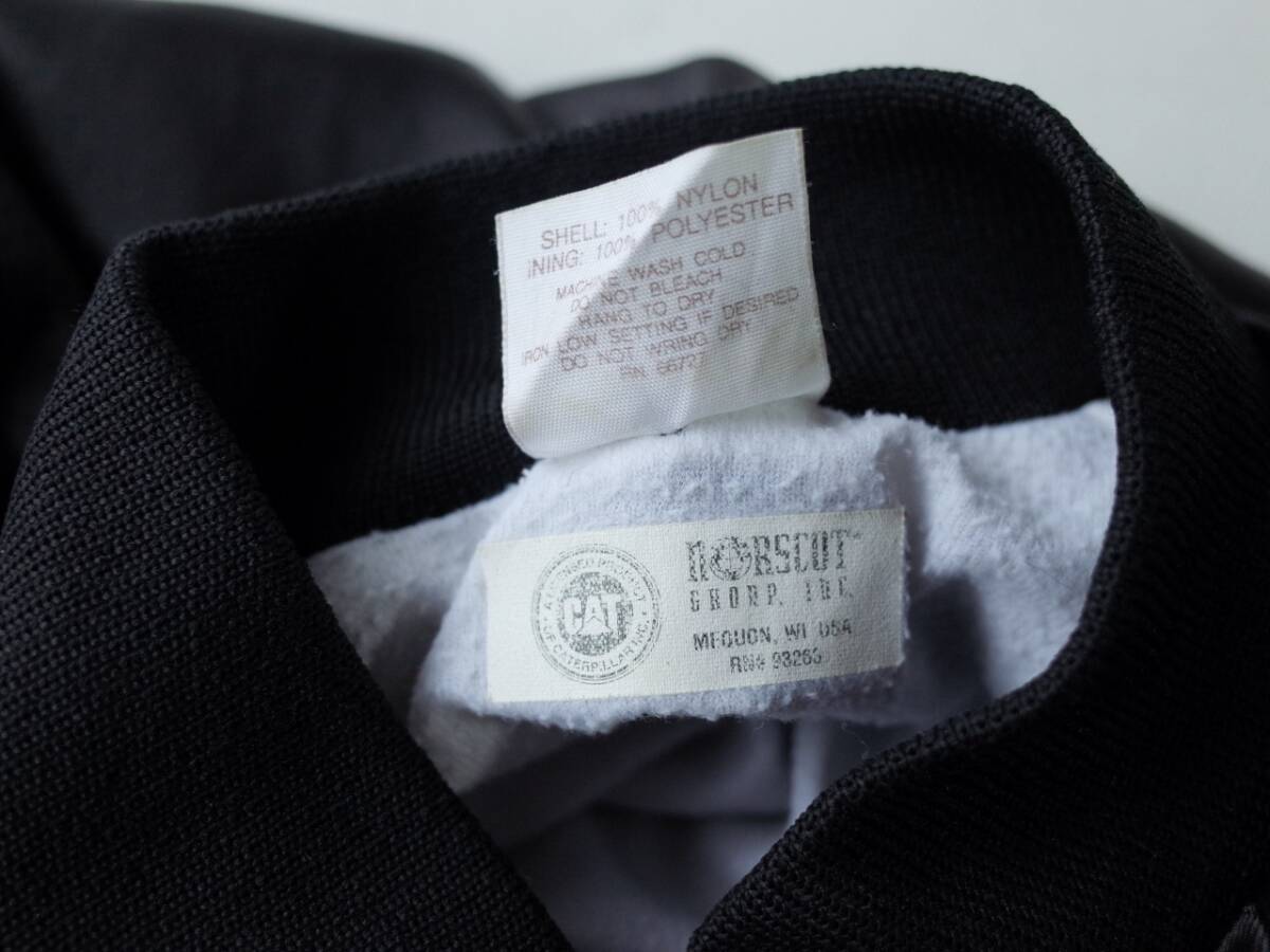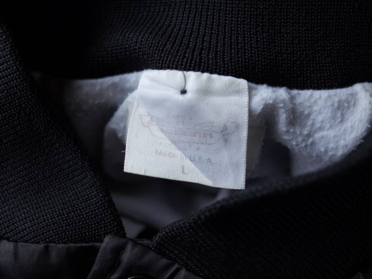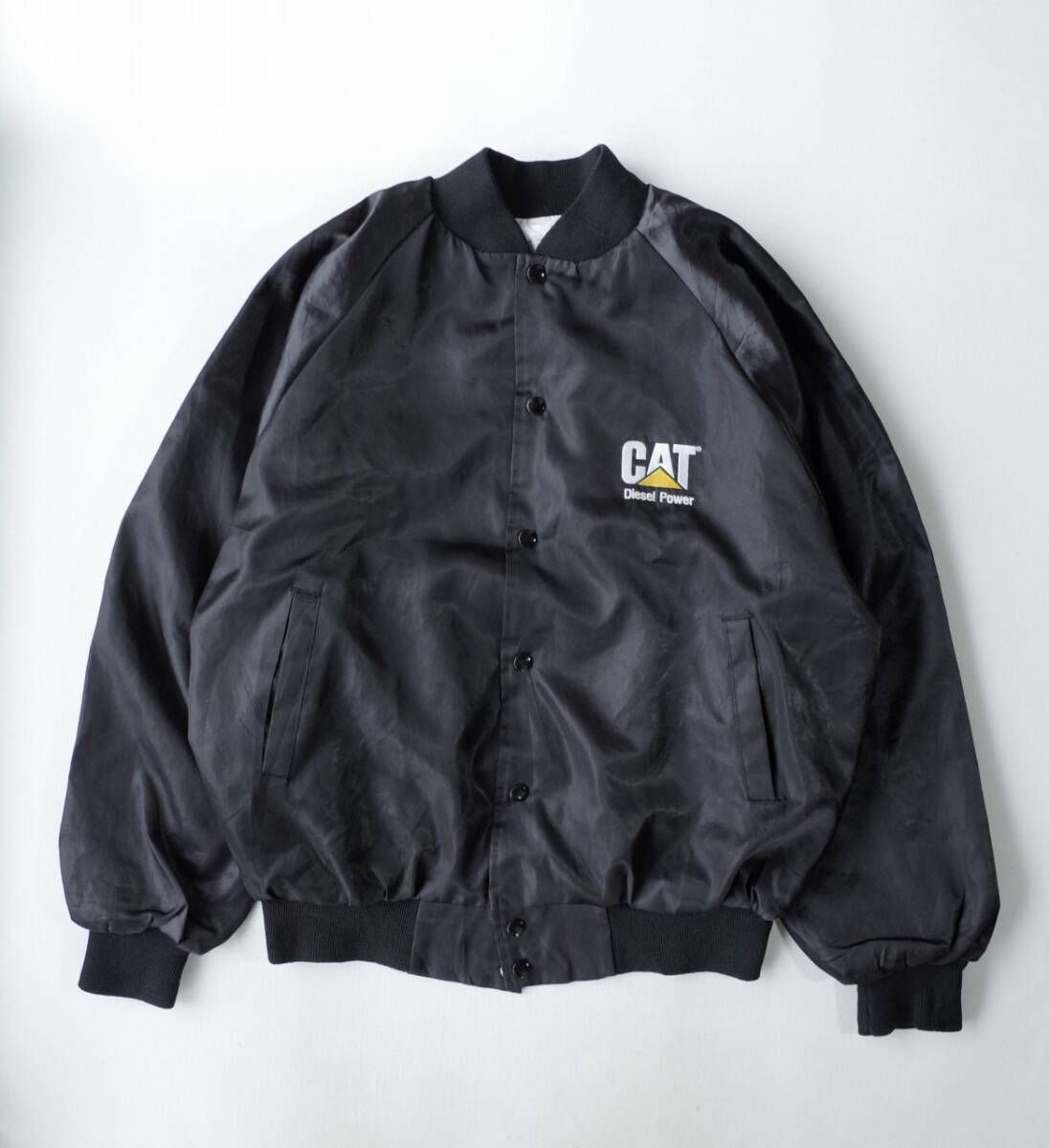 90's ビンテージ USA製 CAT キャタピラー DIESEL POWER 光沢 サテン ナイロンジャケット スタジャン 黒 L