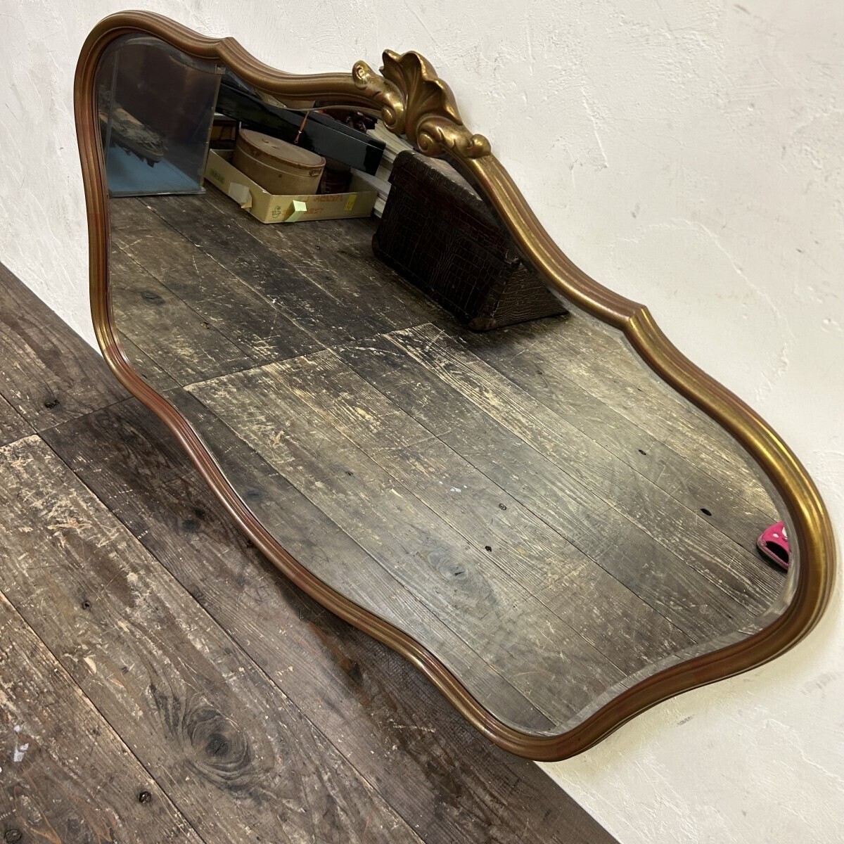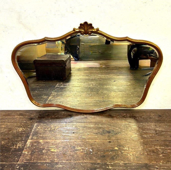 ベルギー製 壁紙 ミラー 木製枠 ロココ調 サイズ 123×80×3cm エレガント ヴィンテージ アンティーク インテリア 家具 クラシック