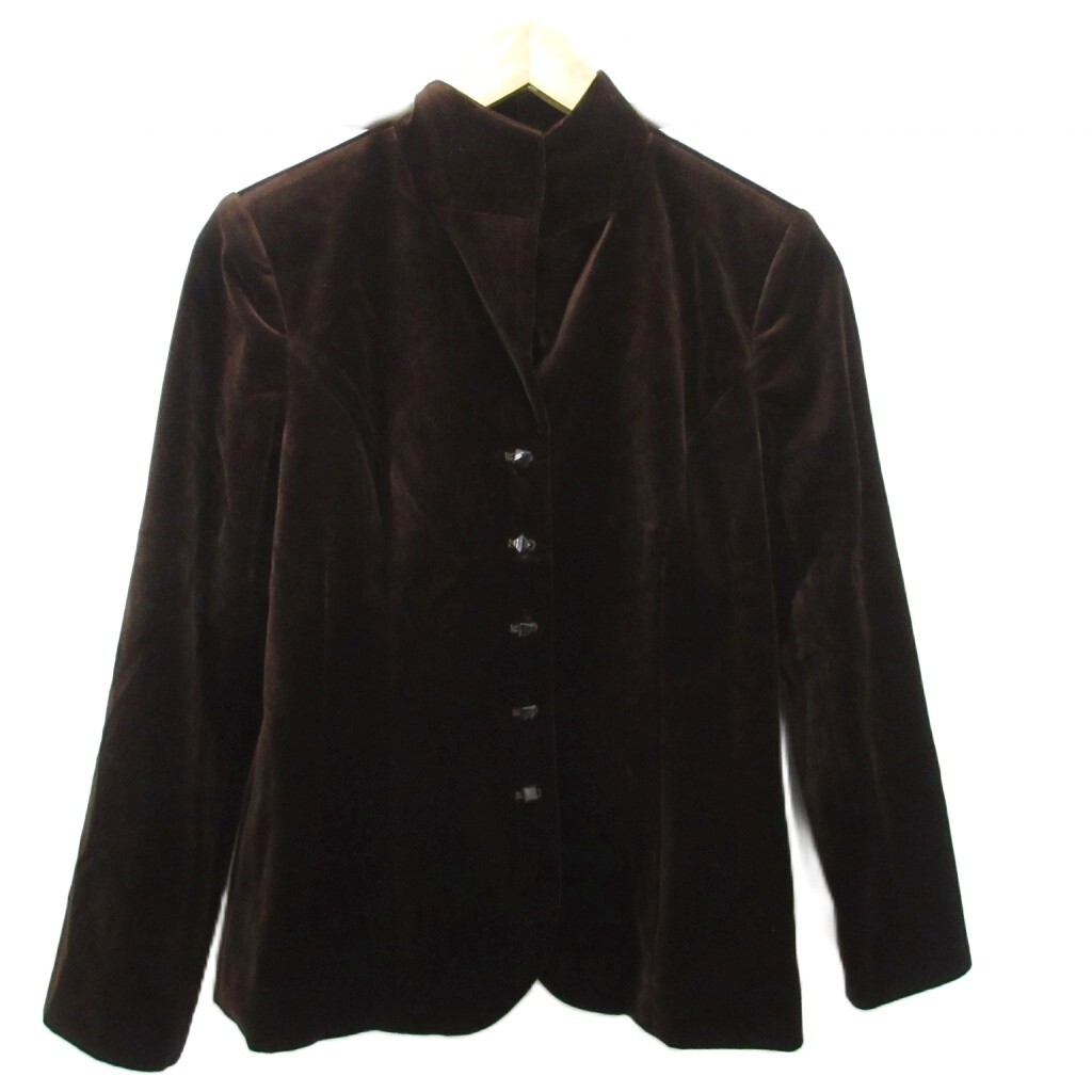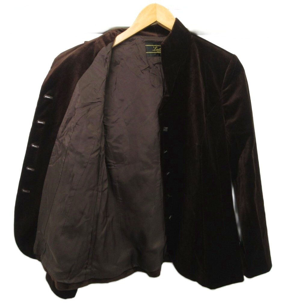 レリアン Leilian テーラードジャケット スタンドカラー ブレザー ベロア 9 M 茶 ブラウン レディース