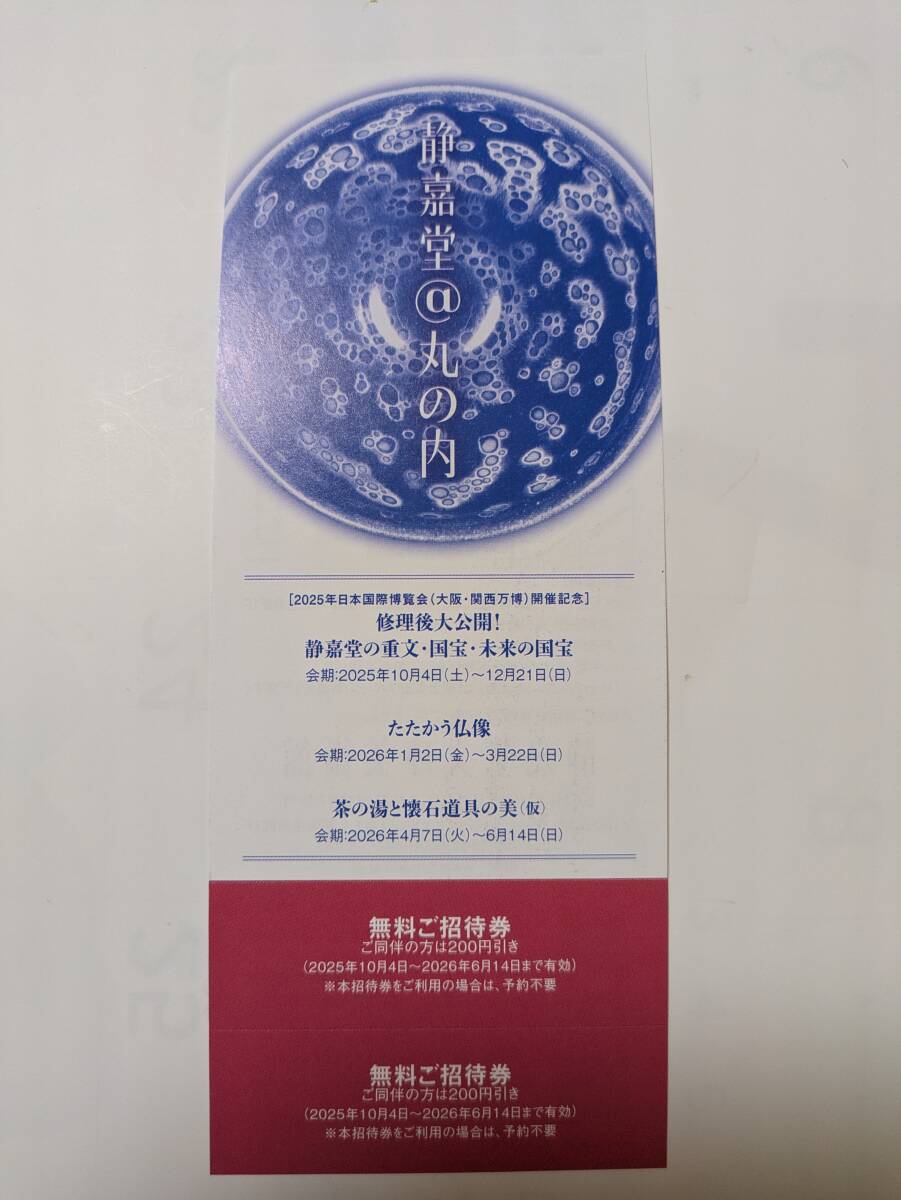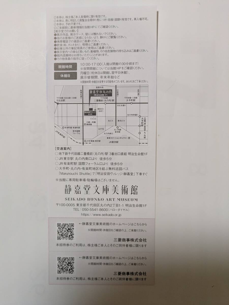 ※三菱商事株主優待 静嘉堂文庫美術館無料御招待券2枚 静嘉堂@丸の内※
