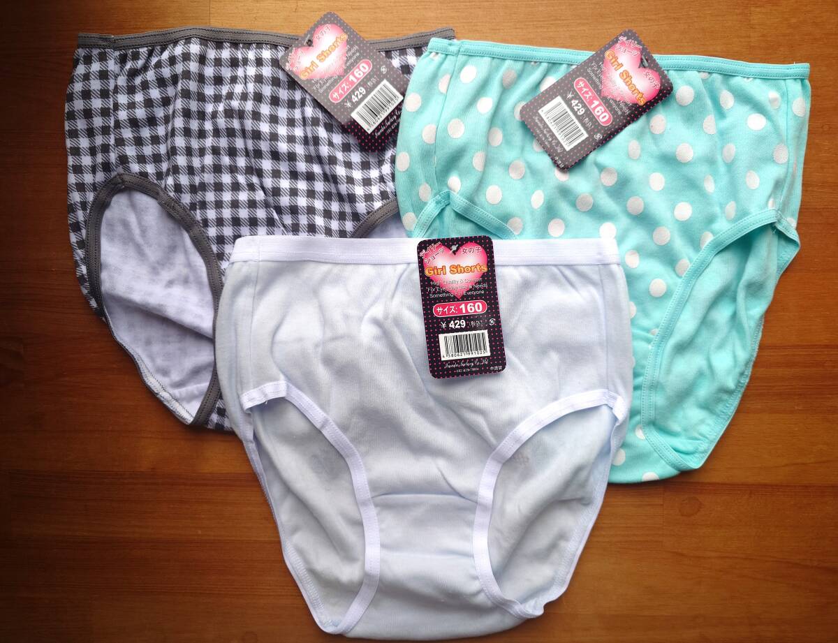 【新品】ガールズ ショーツ 3枚セット 160cm チェック 定価429円 女の子 キッズ
