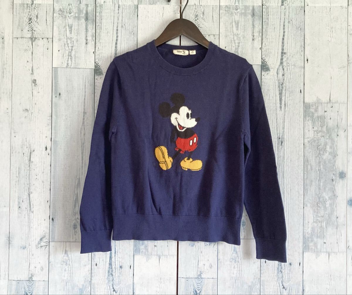 ◆ほぼ未使用◆ UNIQLO × Disney ミッキーマウス ニット セーター コットンベース ネイビー キッズ 140
