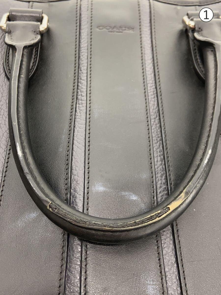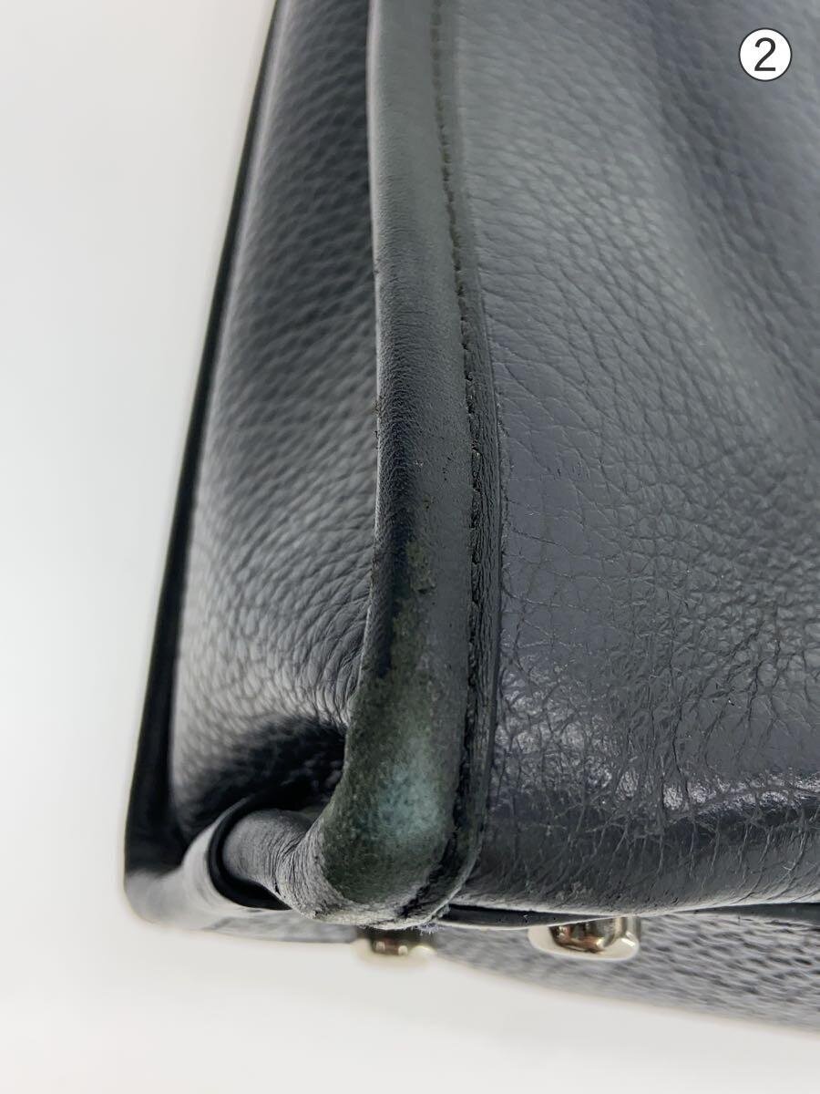 | (1)汚れあり 持ち手内側に剥がれあり (2)擦れあり 角擦れや内側と表面の汚れがございます。 |
