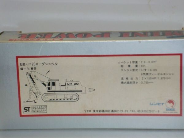 〇1/85 SHINSEI 日立 UH20 ローダショベルです。箱に少し傷みなどがありますので、ご了承の上入札下さい。商品の状況は写真でご判断の 上、ノ-クレ-ム・ノ-リタ-ンでお願いします。保証はできませんが、定形外郵便での発送も可能です。