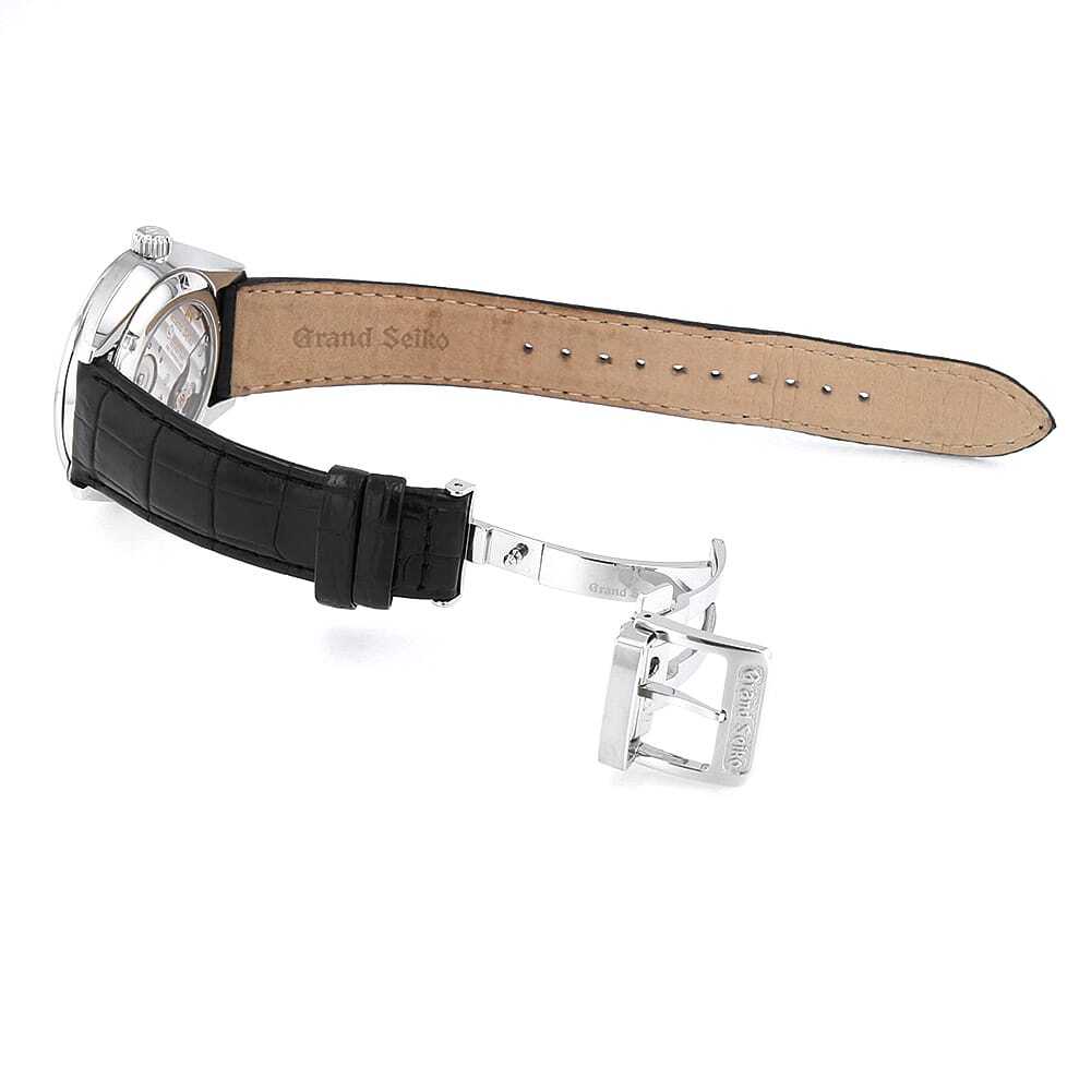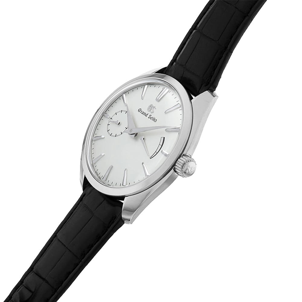 | モデル情報 | 新開発の手巻ムーブメントを搭載した薄型ドレスモデルでグランドセイコーらしいメリハリと柔らかな質感が調和するケースフォルムが特徴です。職人の手によって一つ一つ丁寧に加工が施された針は、ケース、サファイアガラス、ダイアルのそれぞれの豊かなカーブラインと響きあい、一体感を高めている1本です。 |