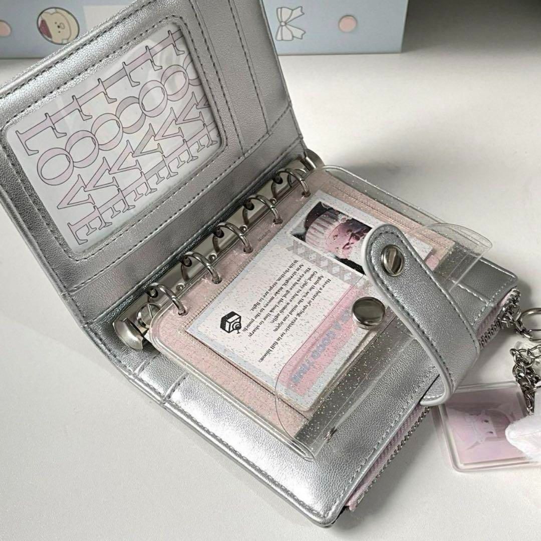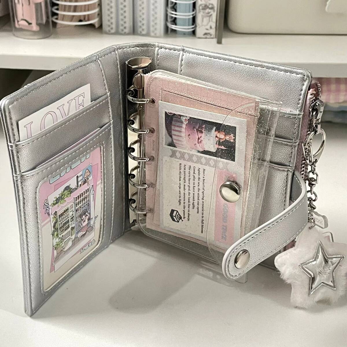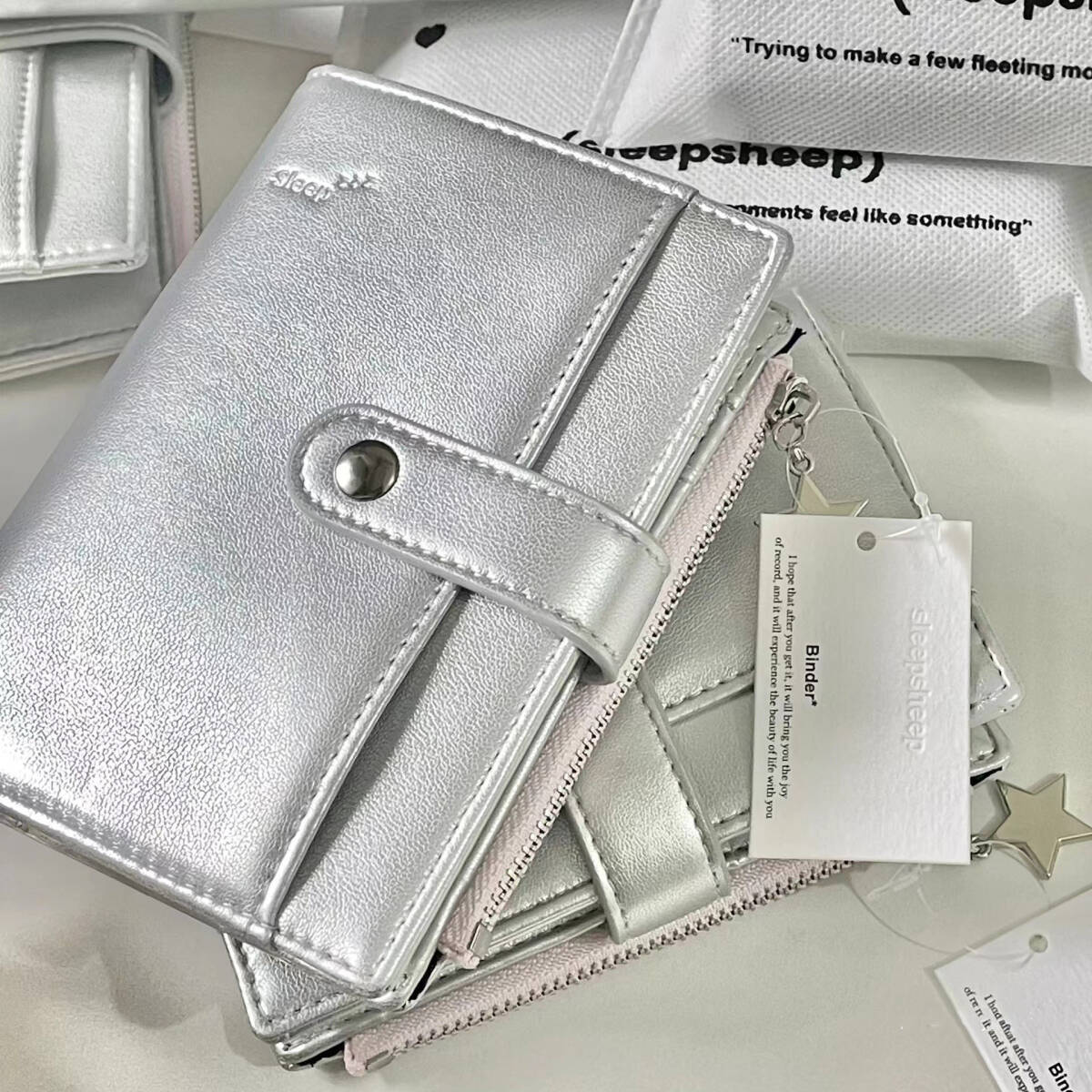 新品 M5 ニ折 システム手帳カバー バインダー リフィル付き ミクロ5 無地40枚 シルバー