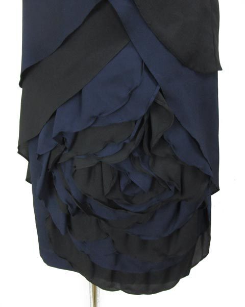 | コメント | デザイン性のある素敵なワンピースドレス。 スカート左サイドには幾重ものフリルデザインで 女性らしい雰囲気。 バックスタイルはフロントと雰囲気が違って 大人キレイな雰囲気。 お出かけスタイルや、ちょっとしたパーティースタイルにおすすめです。 |
