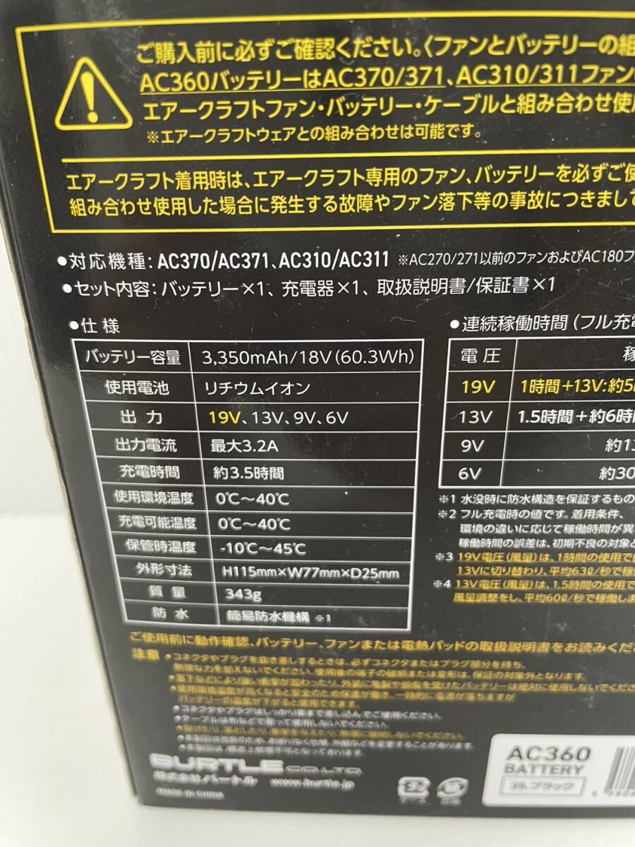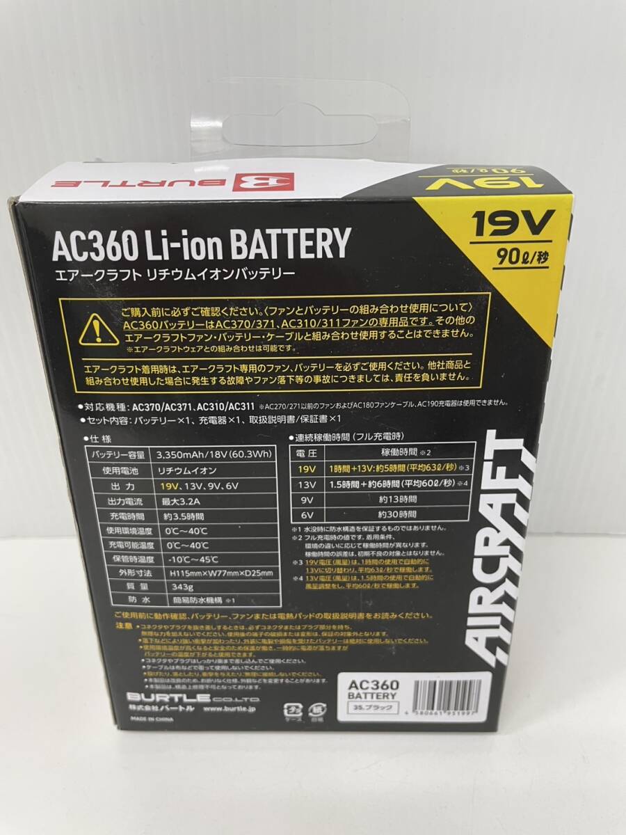 新品未使用品 バートル AC360 エアークラフト 19V リチウムイオンバッテリー 35ブラックです。