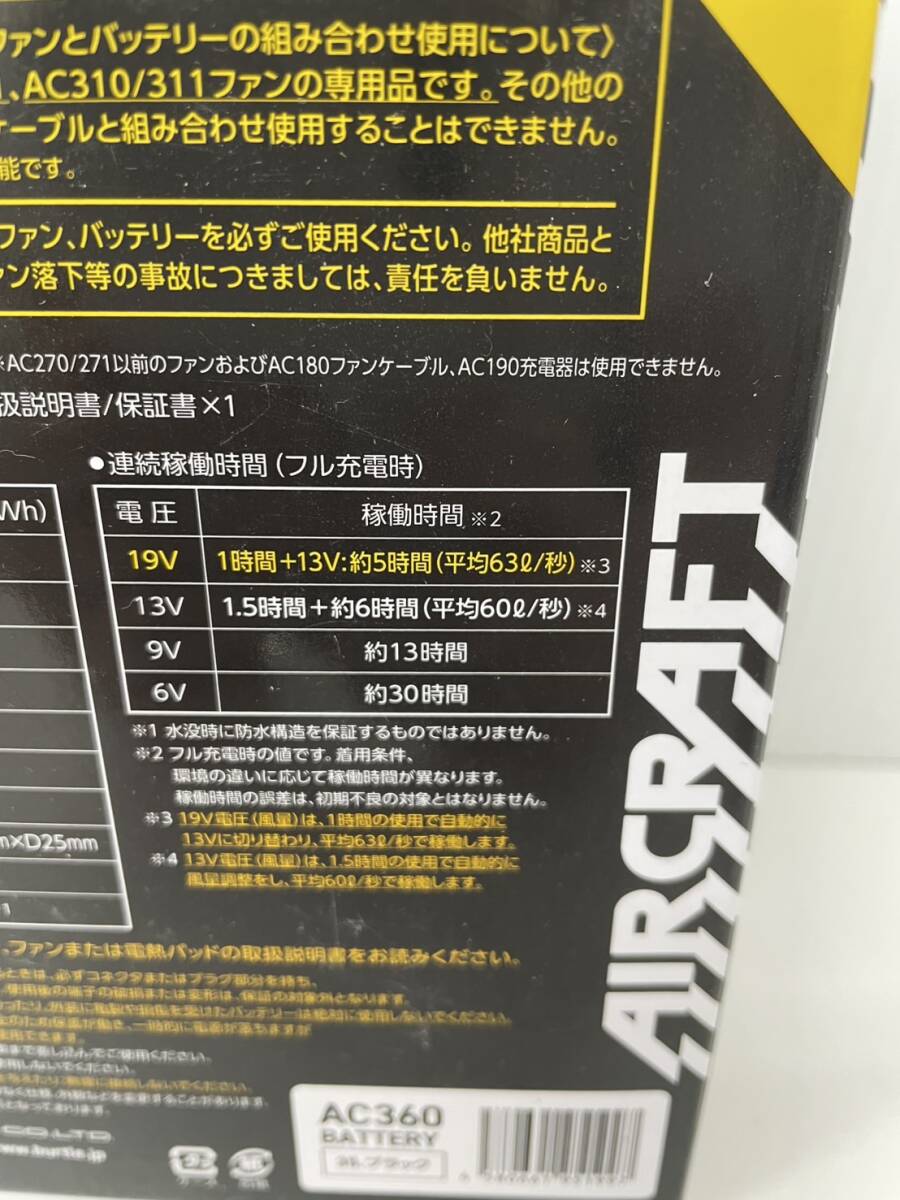 新品 未使用品 バートル AC360 エアークラフト 19V リチウムイオンバッテリー 35ブラック