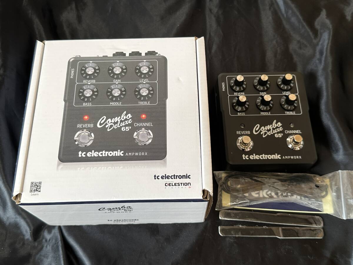 | 数ある商品の中から当方の商品を閲覧頂き誠にありがとうございます。 【商品詳細】 TC ELECTRONIC Combo Deluxe 65' Preamp 1965 Fender Blackface Reverb Deluxe*のサウンドを完全に再現 リアルなサウンドとディティールを提供する革新的なTC AMPWORXモデリングテクノロジー オリジナルユニットのNormal Channel/VIBRATO Channelそれぞれをベースにした2chを切り替え可能 オリジナルユニットと同様のGIBBSスプリングリバーブユニットからキャプチャされた4秒のIRを使用した高品質なコンボリューションリバーブを搭載 Celestion公式 1 x 12” G12M Creamback IRキャビネットシミュレータを搭載 サウンドの表現を広げるREVERB TONE、BRIGHT SWITCH、MIDDLE CONTROLを搭載 自宅での練習に最適なヘッドフォンアウト ホームレコーディングに使用可能なDIアウトプット 仕様 電源:スタンダード5.5 x 2.1mm DC 消費電流:9V センターマイナス 300mA (電源アダプター別売り、電池駆動不可) サイズ:51 x 113 x 136 mm(H x W x D) 【商品状態】 ・使用していたため細かな傷があります。傷などの外観の状態については画像よりご確認ください。 ・アダプターにて動作確認済み。 ・各コントロール、スイッチもガリノイズ等無いことを確認しております。 【付属品】 ・箱、USBケーブル、ゴム足 | ||