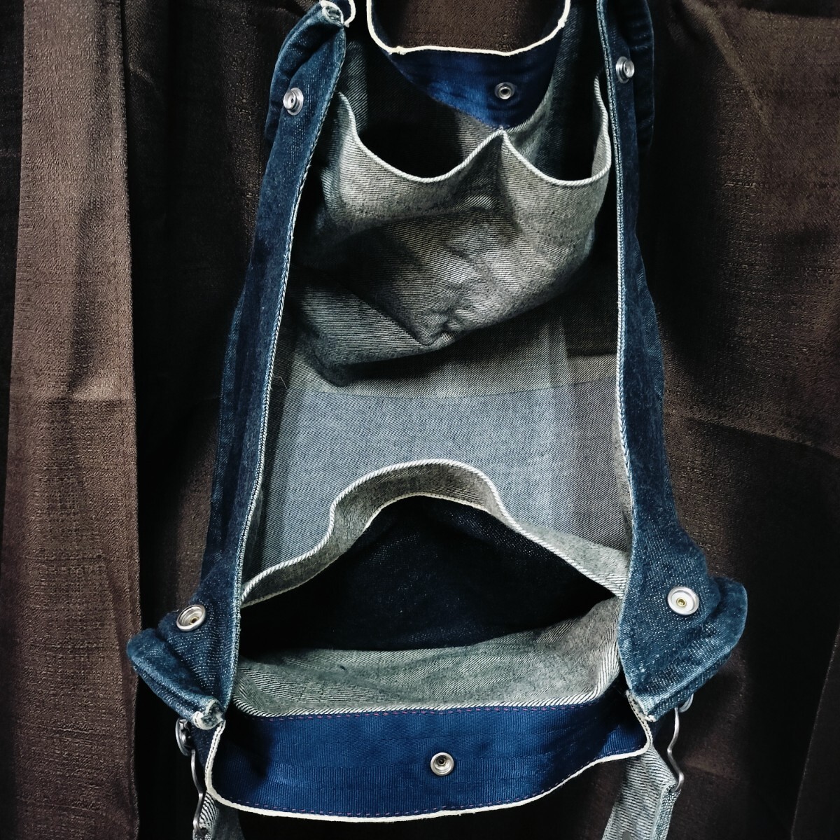 形状はおむすび型でボタンを外すと開口部も広く内側にスマホ等を入れるのに最適なポケットも備わっているため使い勝手はいいと思います。底板もあり下部は型崩れはしにくいです。