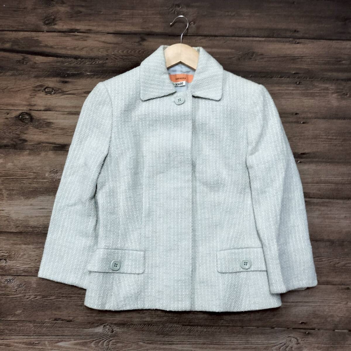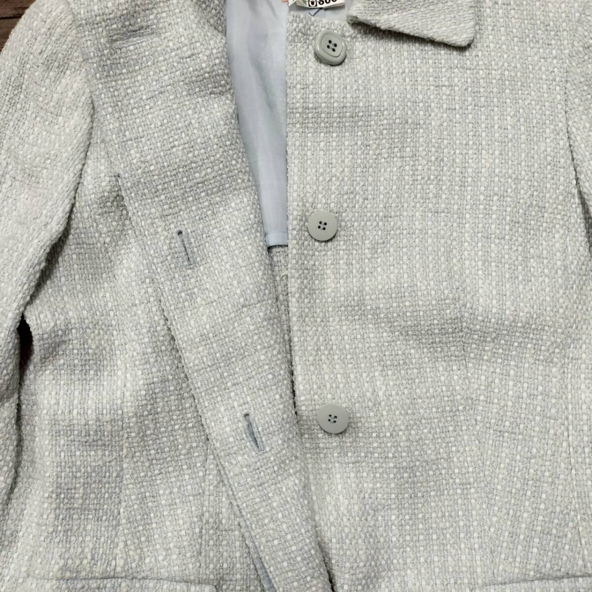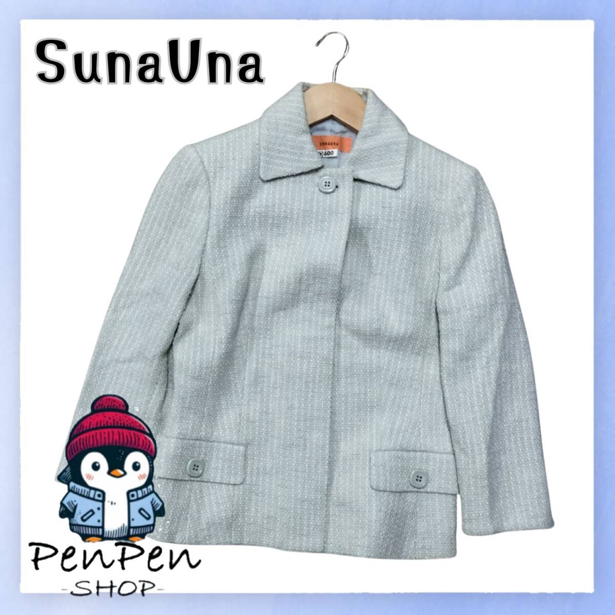 SunaUna スーナウーナ 日本製 レディース ツイードジャケット 上品デザイン シンプル グレー系 サイズ38 M相当