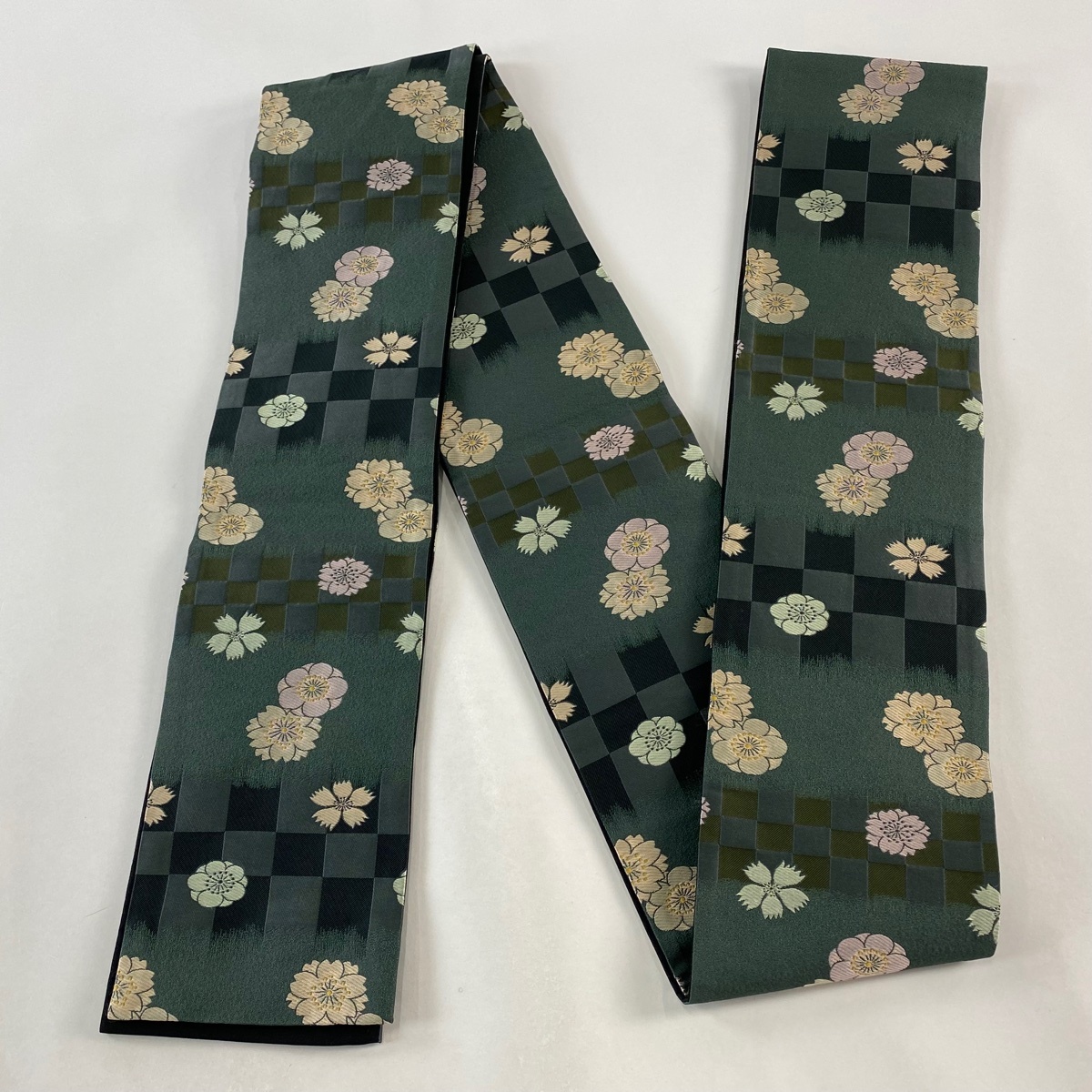 半幅帯 優品 桜 梅 緑 化繊 【中古】 |