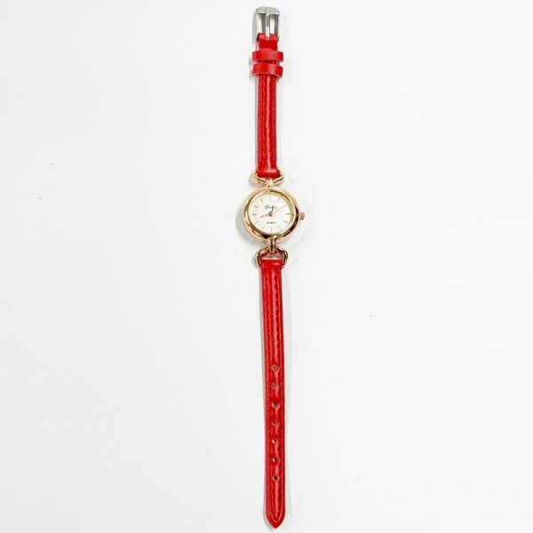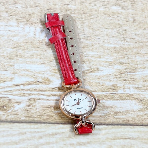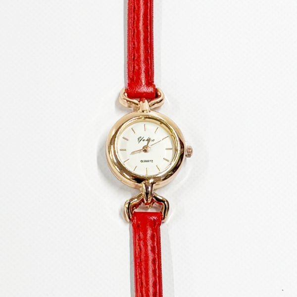 やわらかなレザーとゴールドのベゼルが、手元に上品な華やかさを添える一本。