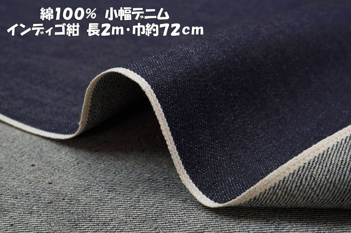 綿100%小幅デニム/インディゴ紺 中厚地/レギュラーoz程度ハリコシ伸縮無し 長2m巾約72㎝程度 ジーンズ デニムジャケット バッグ 帽子
