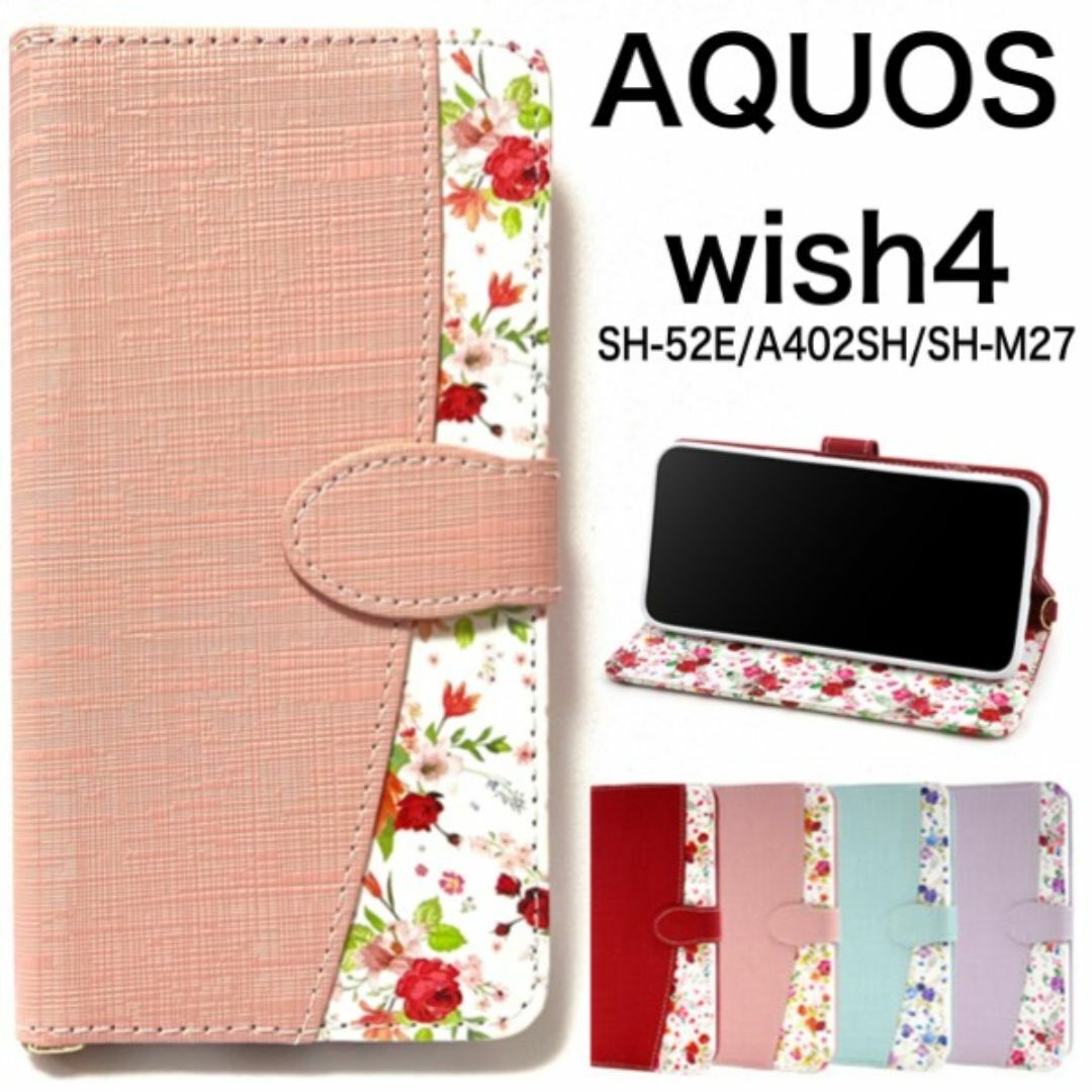 AQUOS wish4 SH-52E/A402SH/SH-M27用 ハッピーブーケ手帳型ケース