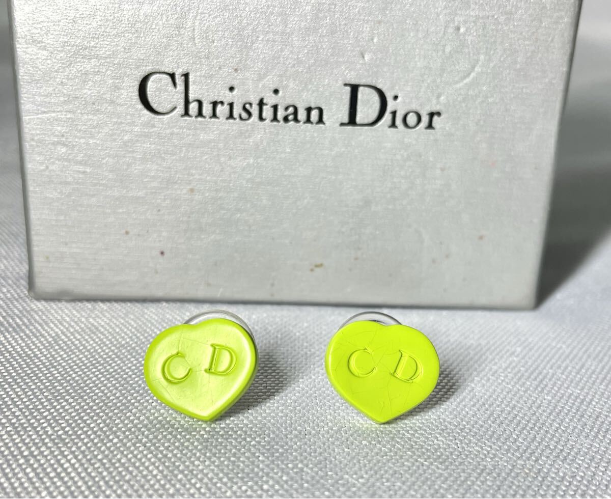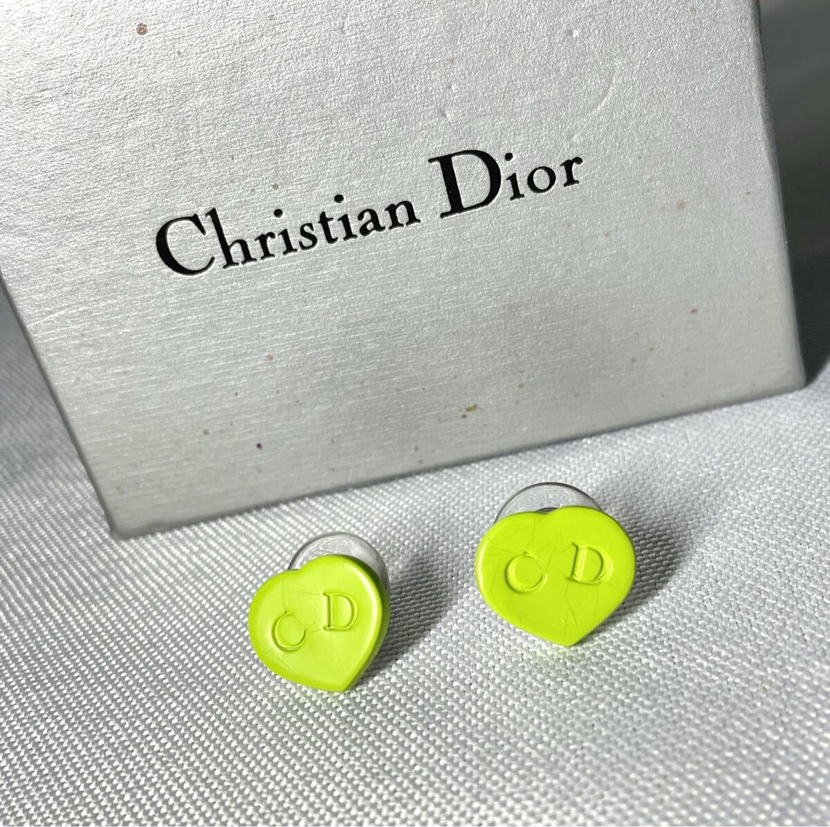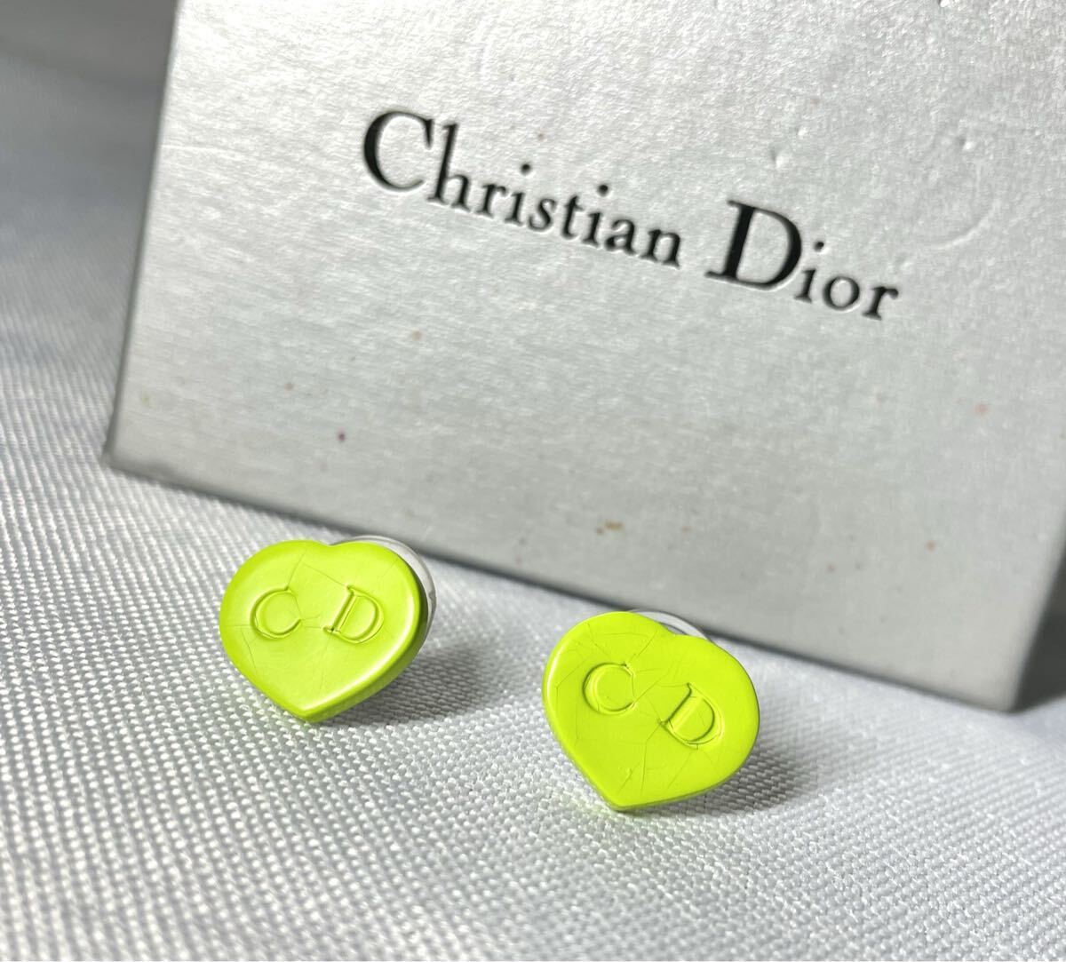 即決希少 Dior ディオール CDロゴ ハートデザイン ピアス ライトグリーン 男女兼用 箱あり