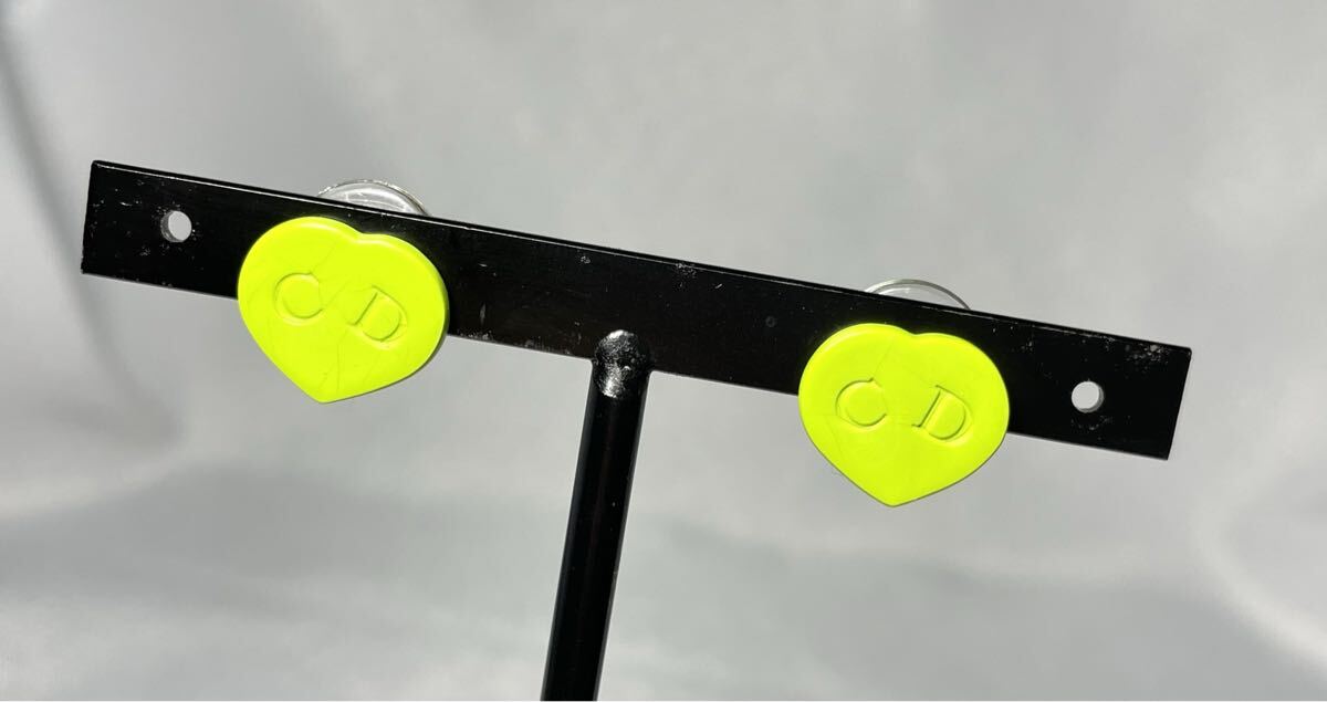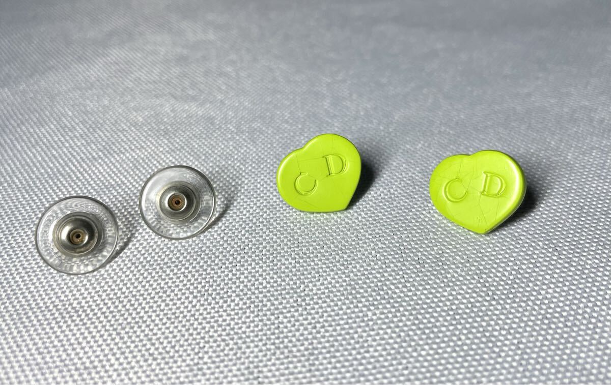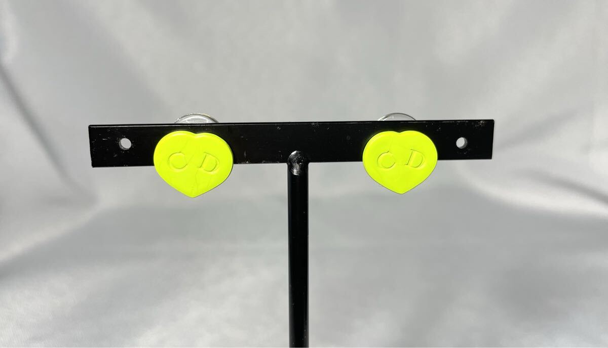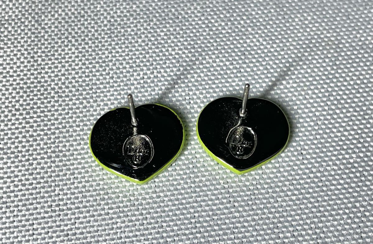 即決希少 Dior ディオール CDロゴ ハートデザイン ピアス ライトグリーン 男女兼用 箱あり
