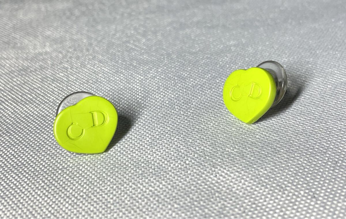 耳元から見えるディオールのイニシャルロゴCD&ハートデザインは高級感抜群です