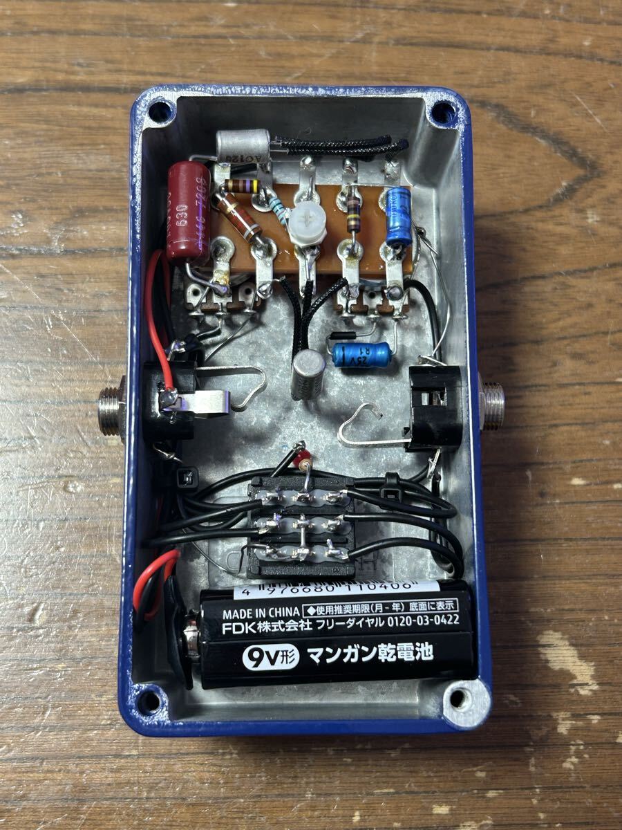 | 注意事項 | ・ACアダプターは使用できません。電池駆動のみです。 ・初期不良の際には対応いたします。 ・バイアス調整用の可変抵抗が取り付けてありますが、調整する場合は自己責任でお願いします。短絡させると一瞬でトランジスタがショートして壊れます。 ・ノークレームノーリターンでお願いいたします。 ・付属の電池はテスト用ですので、ライブ等で使用する際は新しい電池をご使用ください。 ・送料、振込み手数料はご負担願います。 ・商品はゆうパック着払い、クロネコ着払いにて発送いたします。 |