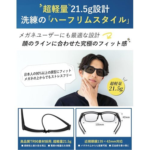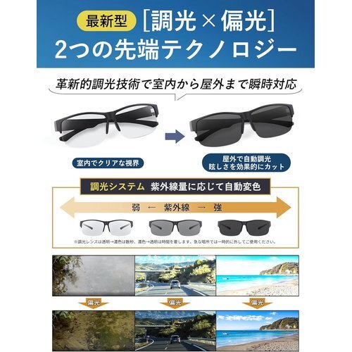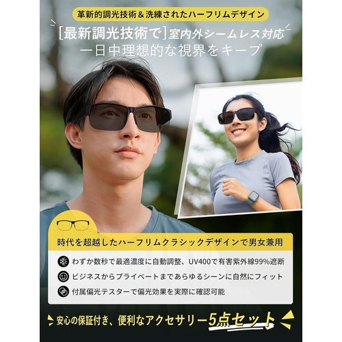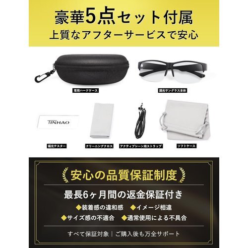 TINHAO 調光サングラス 変色偏光レンズ ハーフリム クラシック 釣り 登山 キャンプ ゴルフ ドライブ 近視対応 オーバーグラス UV400 調光レンズ 男女兼用 超軽量21.5g 豪華5点セット 129
