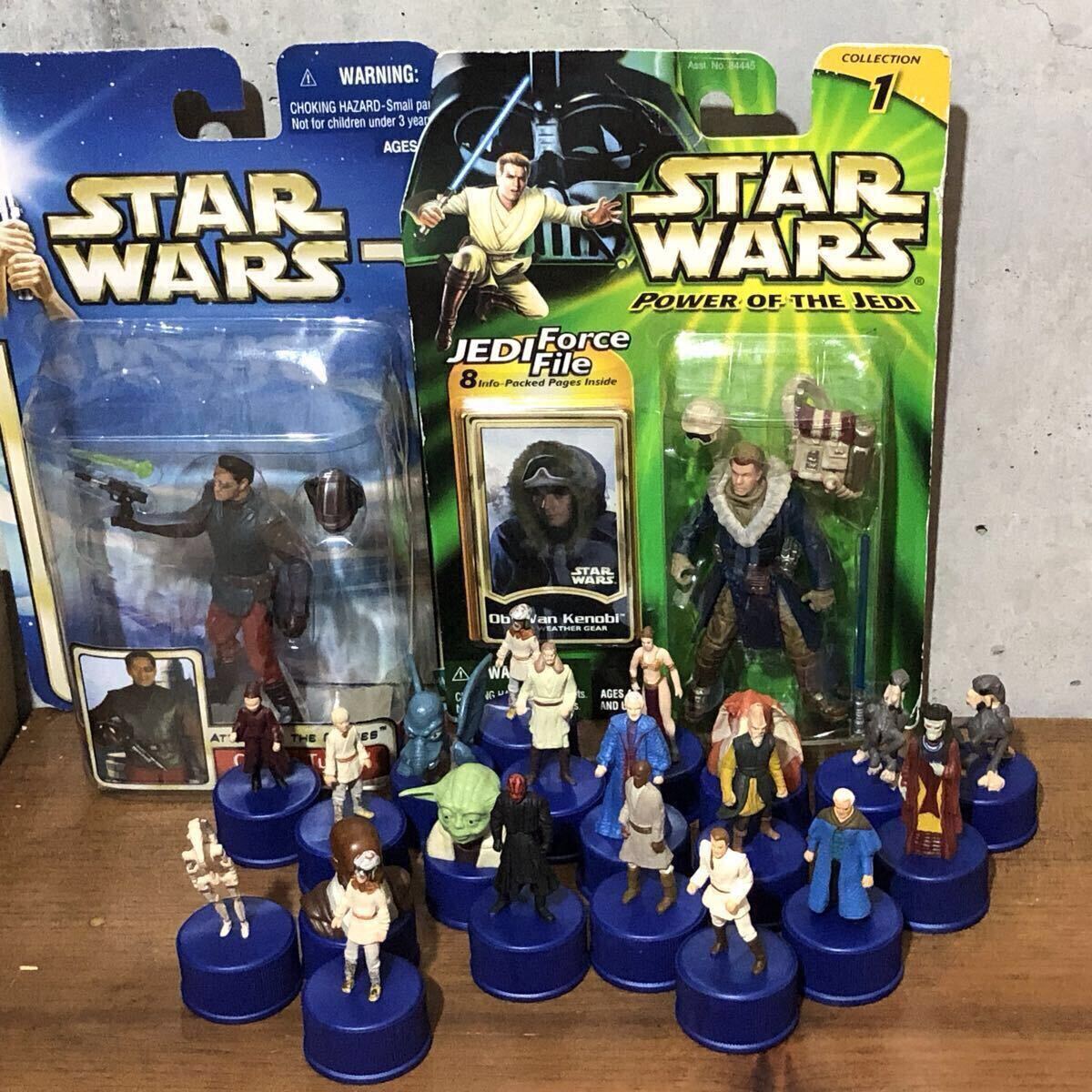 STAR WARS キャラクターフィギュア2個とペプシのボトルキャップ20個のアソートセットまとめ売り。